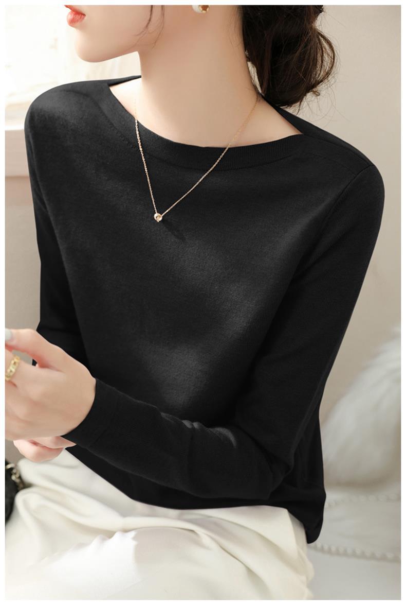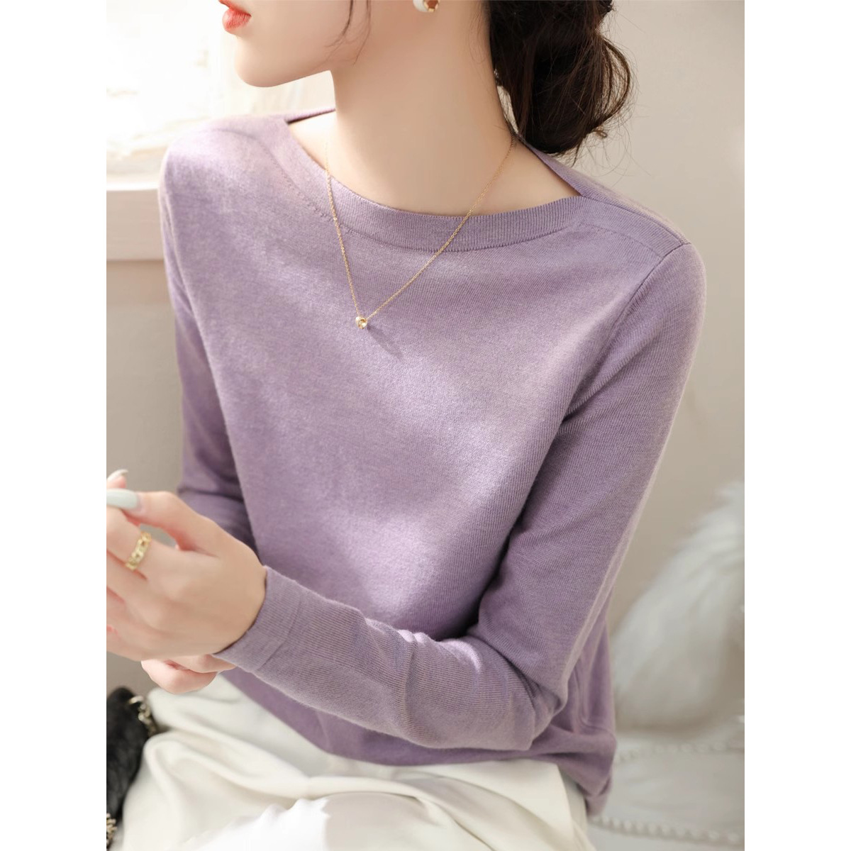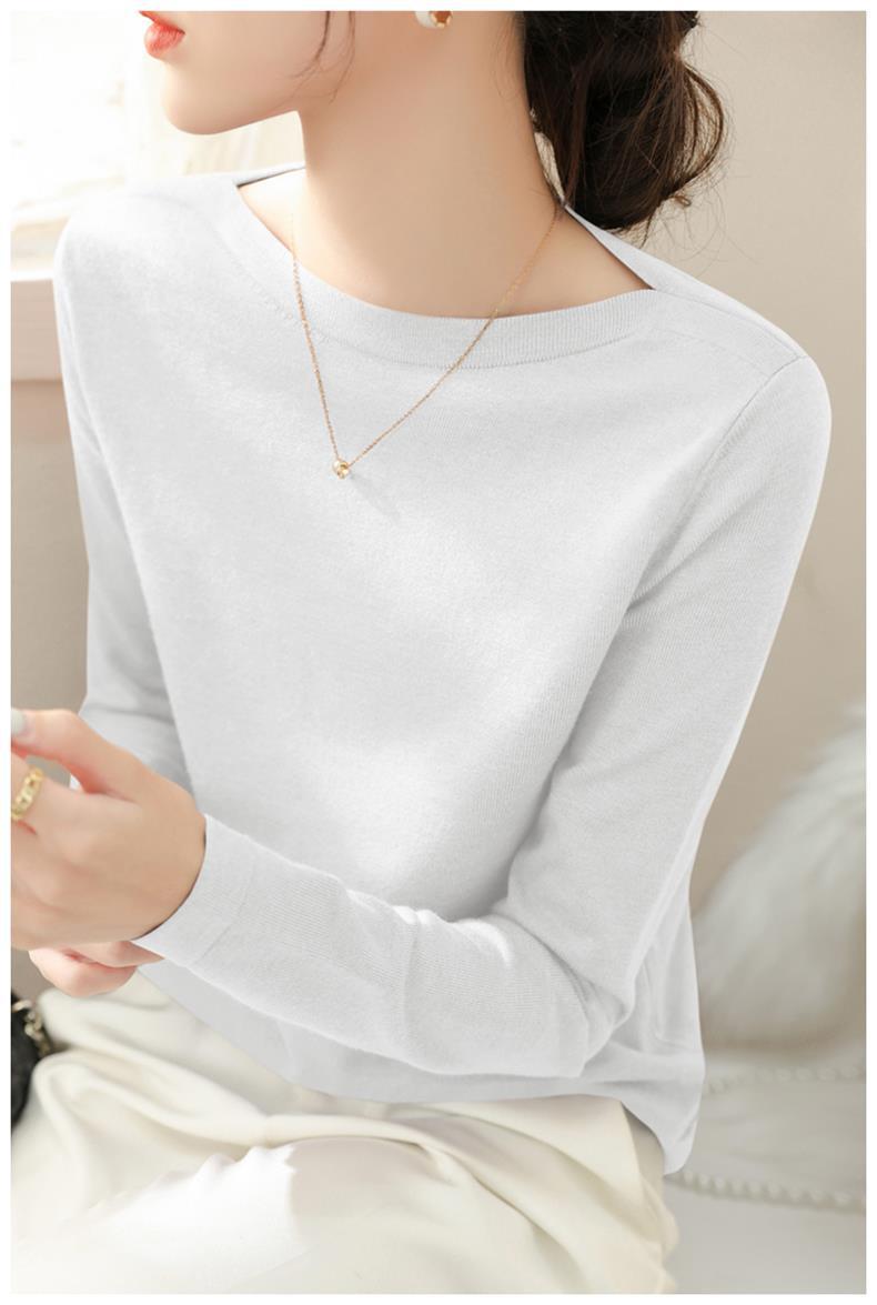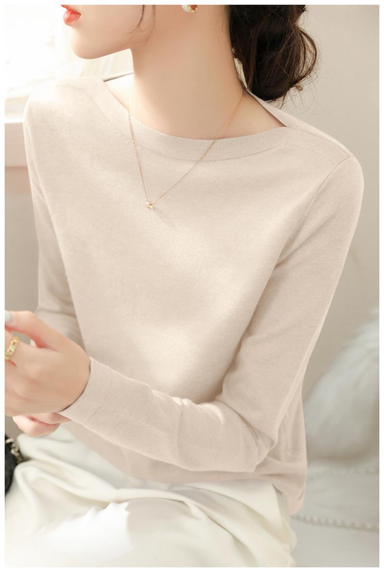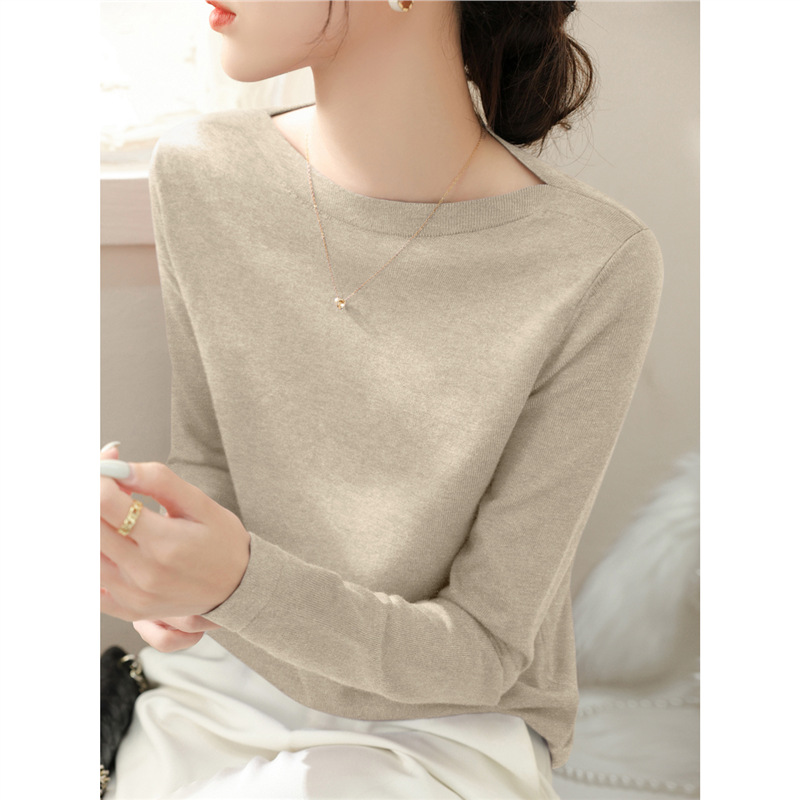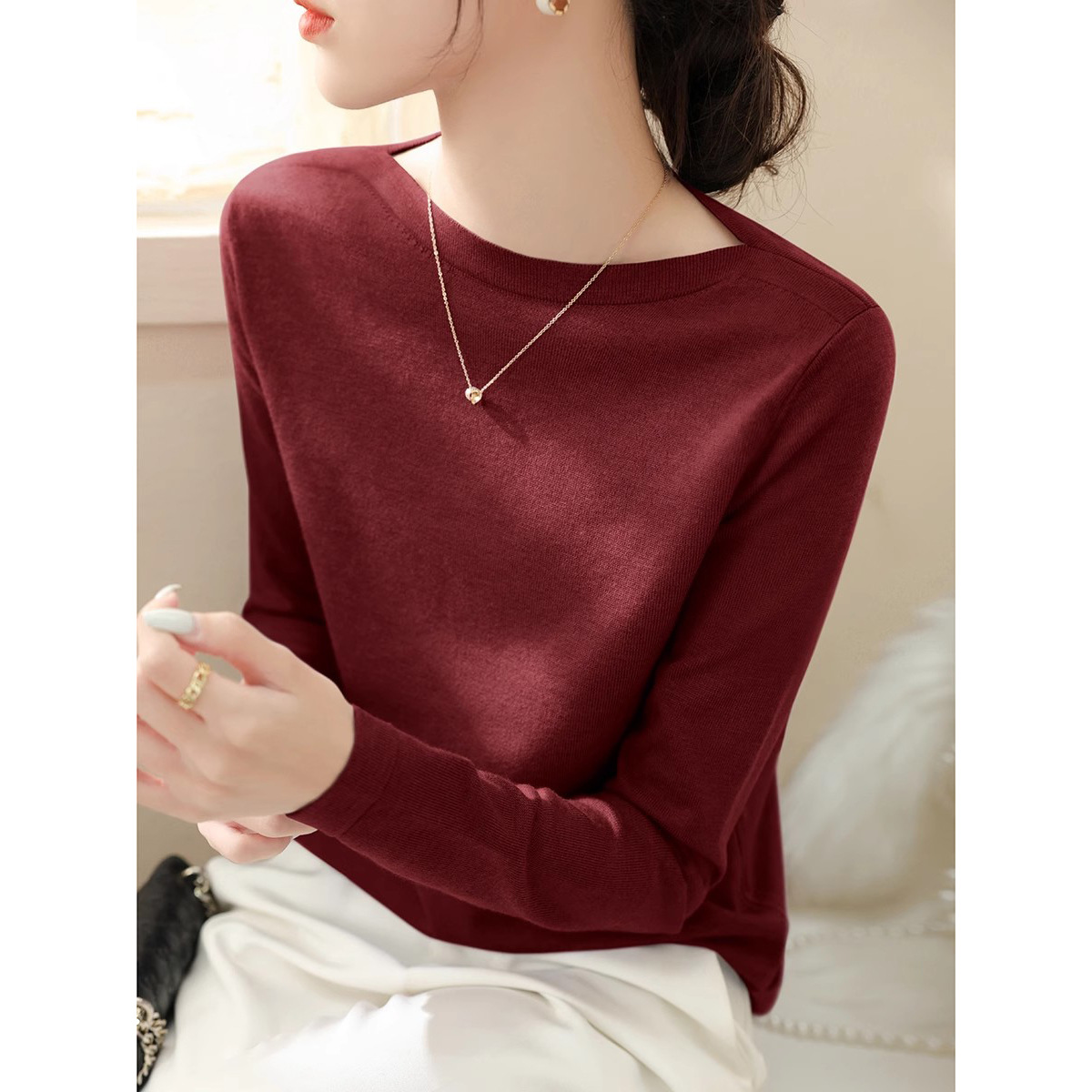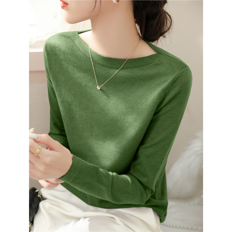 가을 얇은 어깨 칼라 슬림 핏 긴소매 기본 셔츠 새로운 디자인 센스 내부 슬림 스웨터 탑
