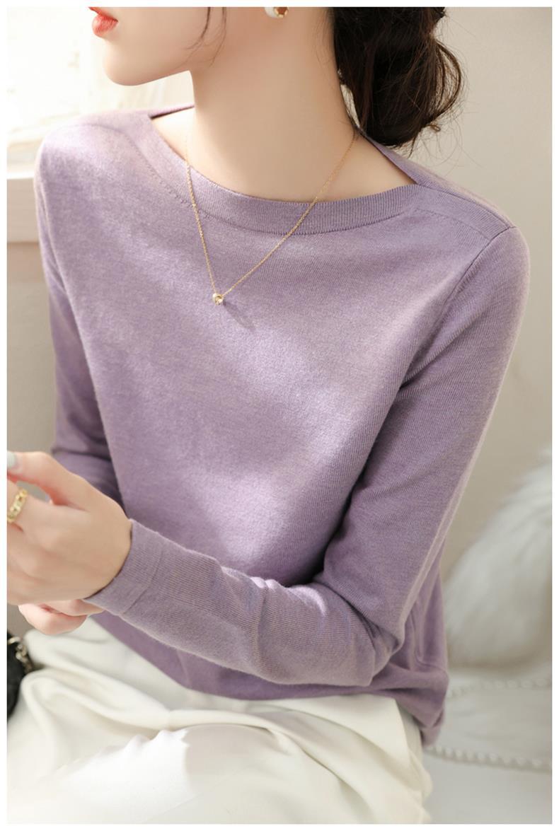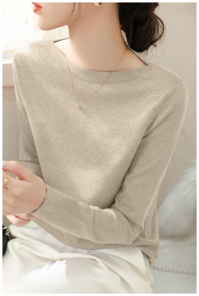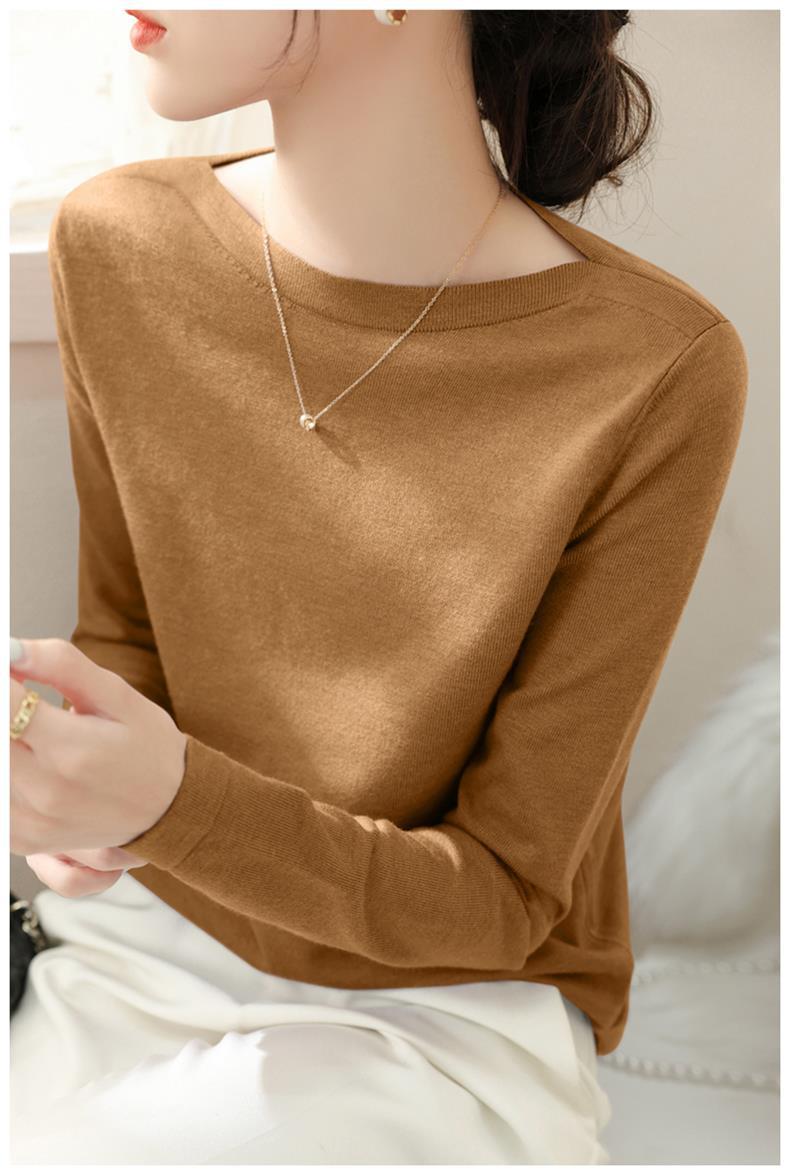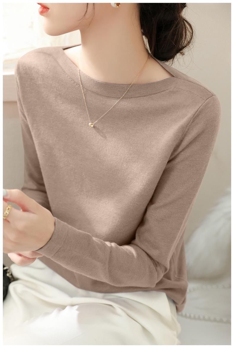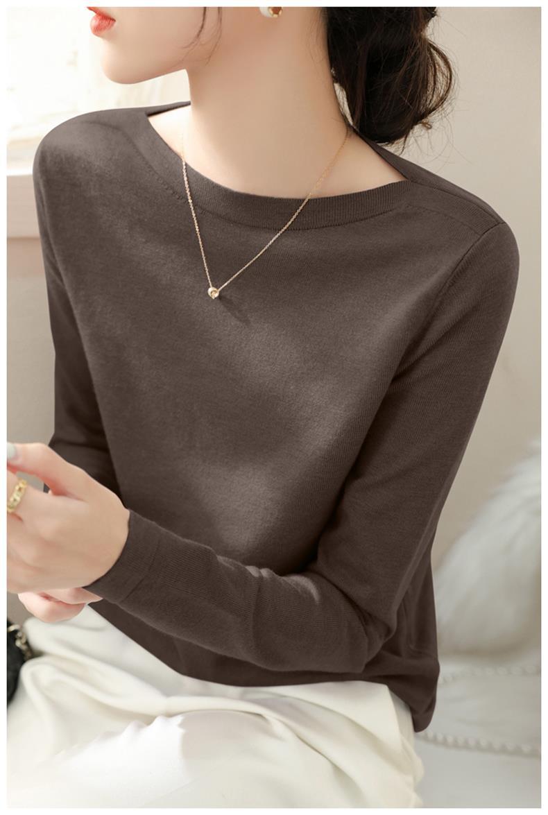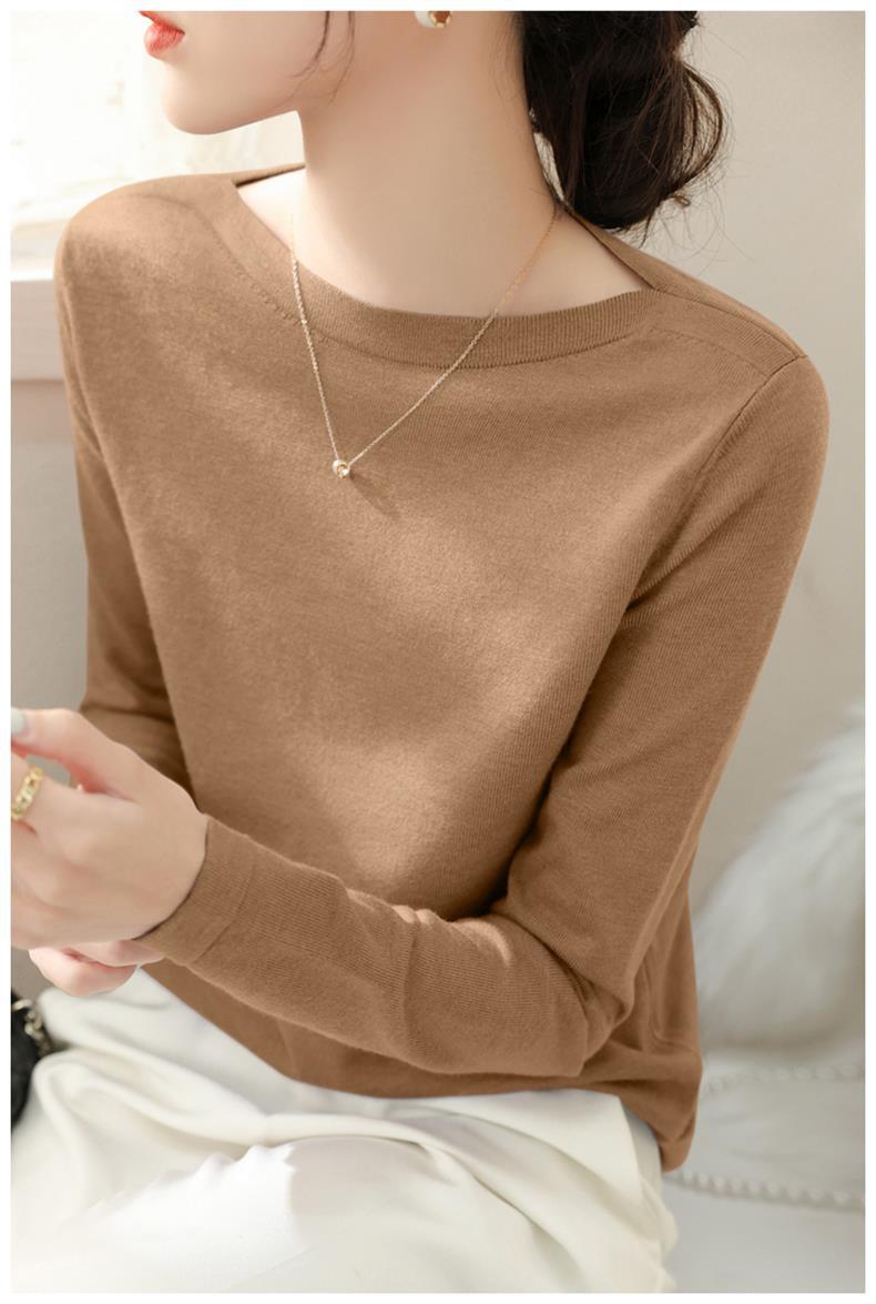 가을 얇은 어깨 칼라 슬림 핏 긴소매 기본 셔츠 새로운 디자인 센스 내부 슬림 스웨터 탑