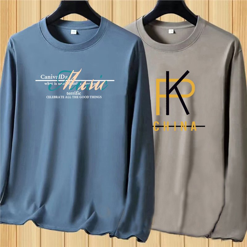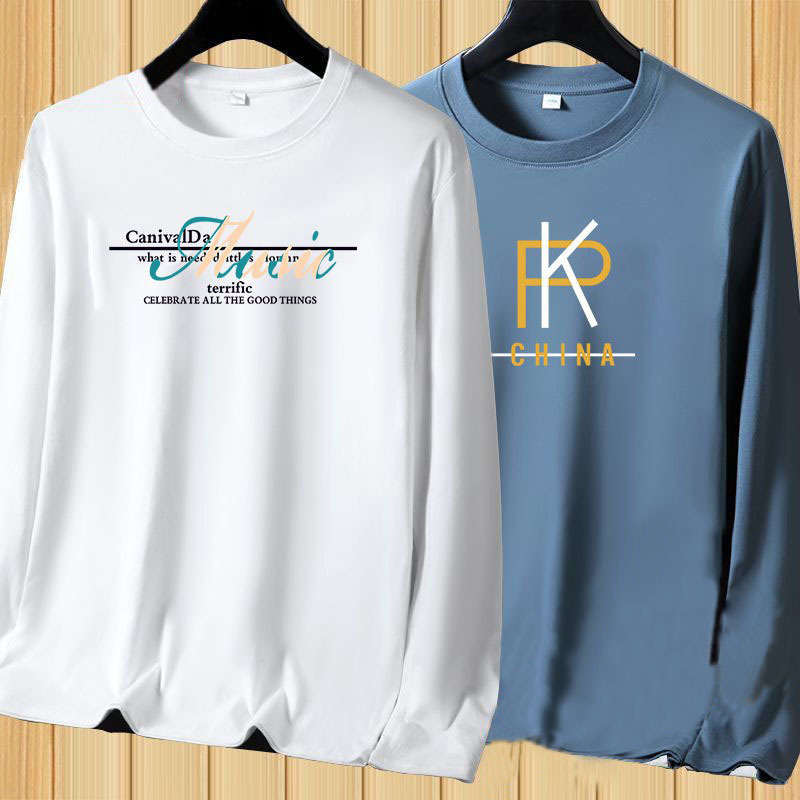 봄과 가을 새로운 얇은 남성용 긴팔 부드럽고 편안한 둥근 목베이스 셔츠 인쇄 트렌디 플러스 사이즈 티셔츠 남성용 스웨터