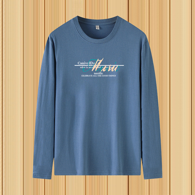 봄과 가을 새로운 얇은 남성용 긴팔 부드럽고 편안한 둥근 목베이스 셔츠 인쇄 트렌디 플러스 사이즈 티셔츠 남성용 스웨터스토어 가기
