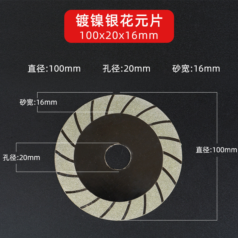 采用电镀金刚石使用寿命长,具有很高的硬度,耐磨性,和优良的抗冲击性,可以用来打磨,切割物体表面,适用范围广。