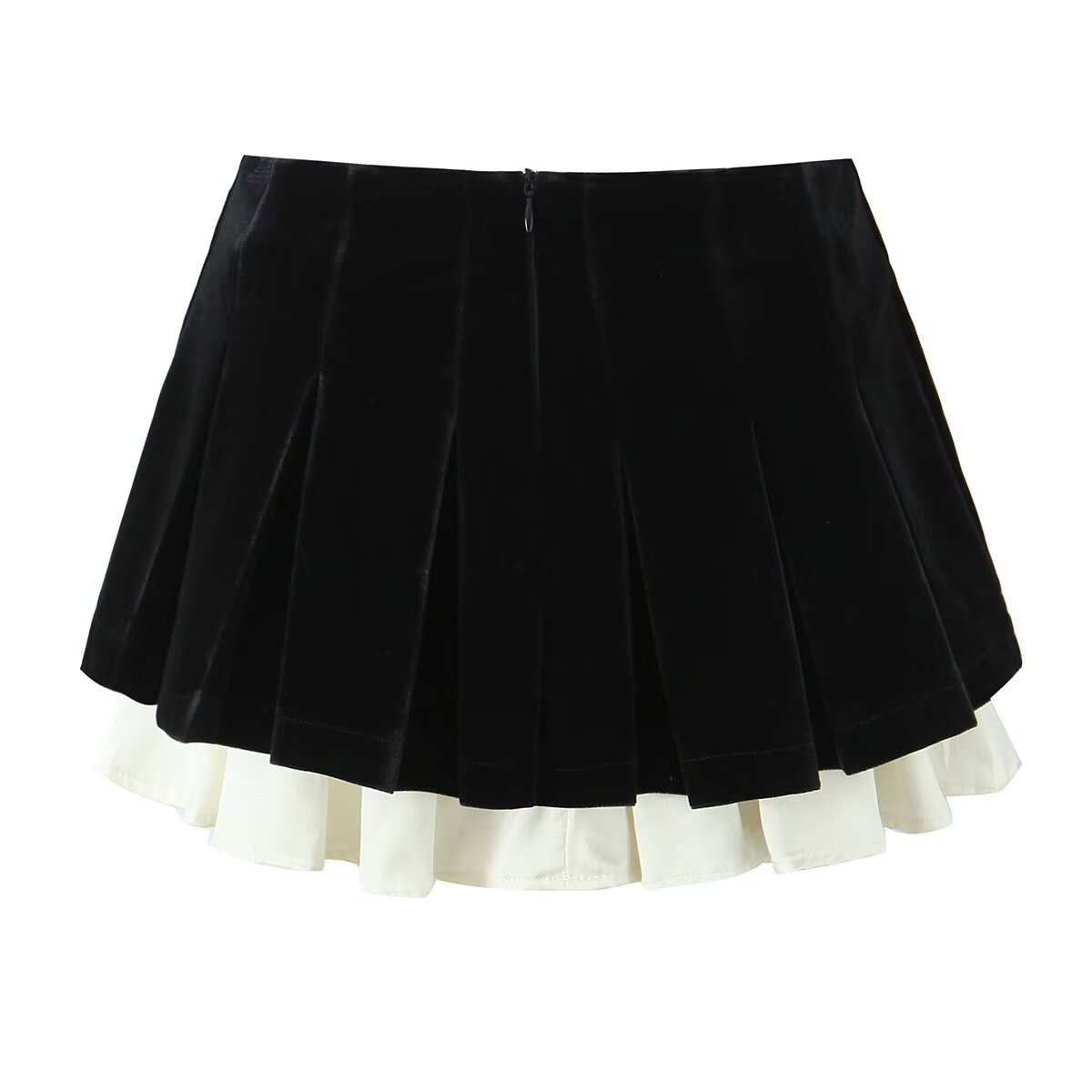 프랑스 복고풍 스타일 가을 새로운 하이 허리 벨벳 주름 치마 컬러 매칭 멀티 레이어 올 매치 스커트 안티 라이트