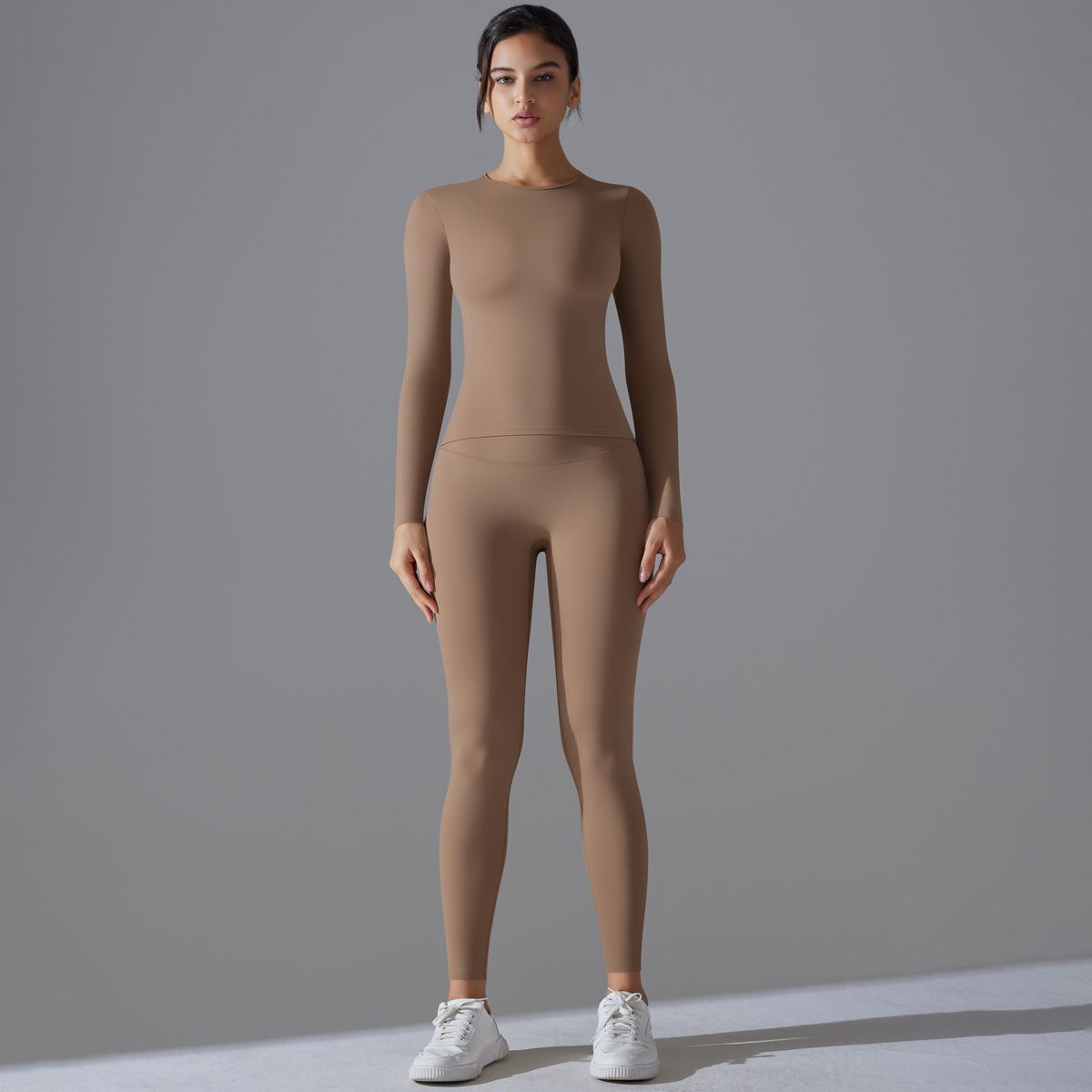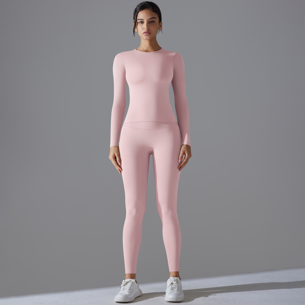 국경 간 새로운 샌딩 나일론 긴팔 요가 세트 높은 탄성 알몸 꽉 맞는 스포츠 세트 달리기 피트니스 투피스 세트