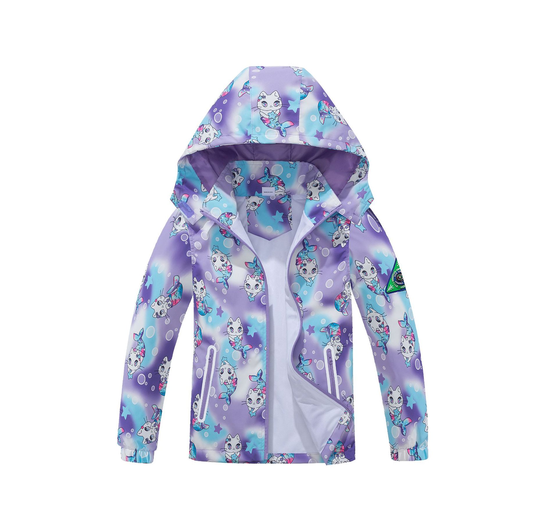 소녀 야외 방수 통기성 모자 오프 만화 인쇄 고양이 지퍼 셔츠 재킷 코트 비옷 경량 재킷 재킷