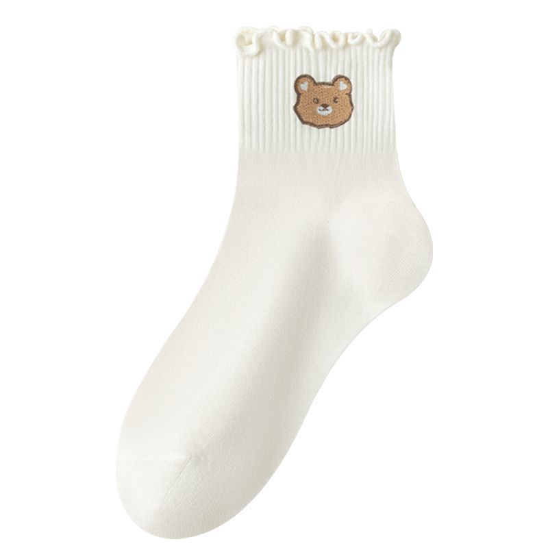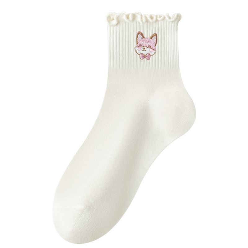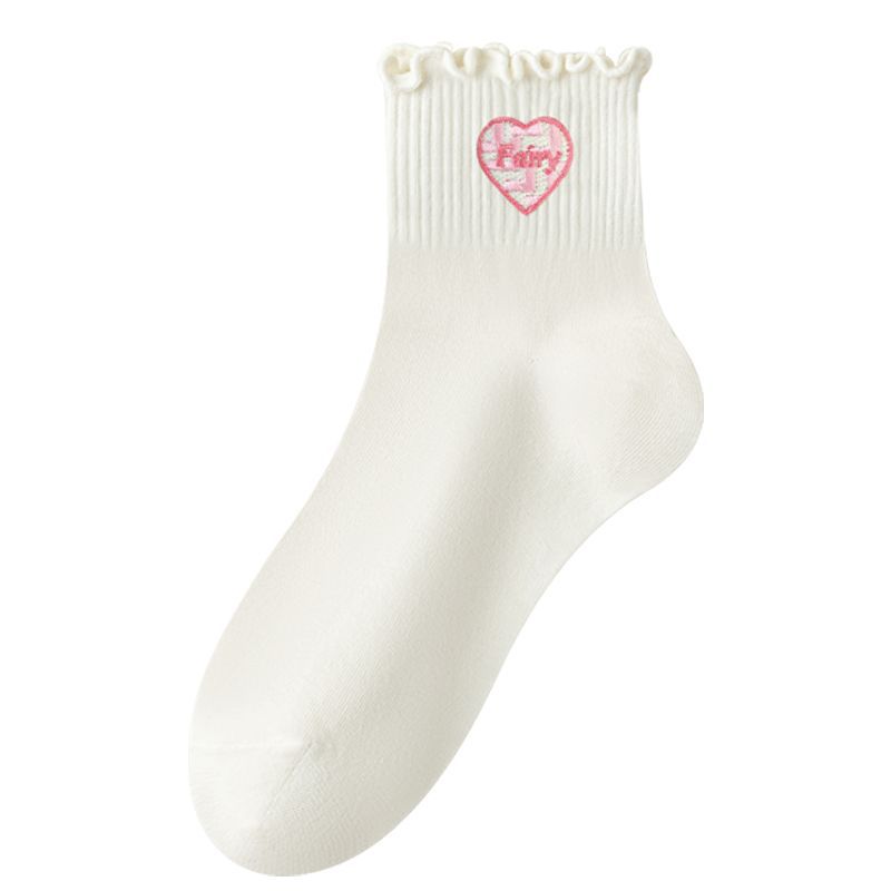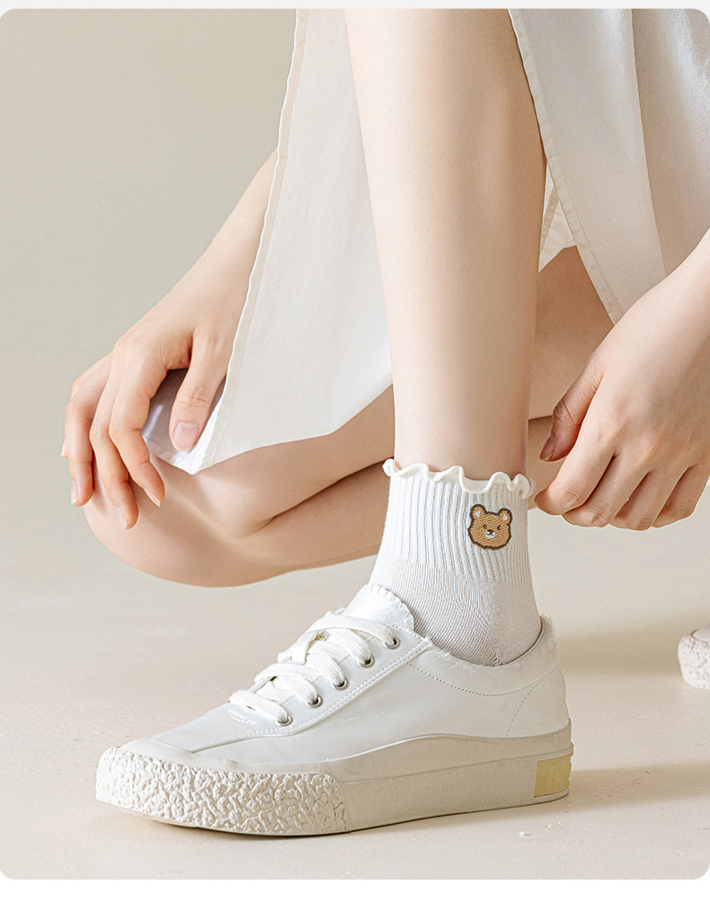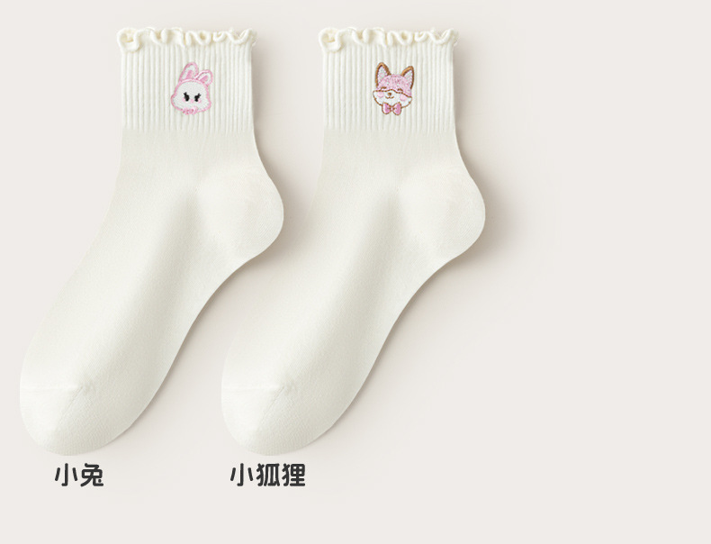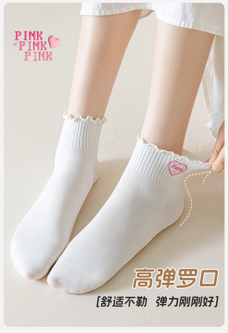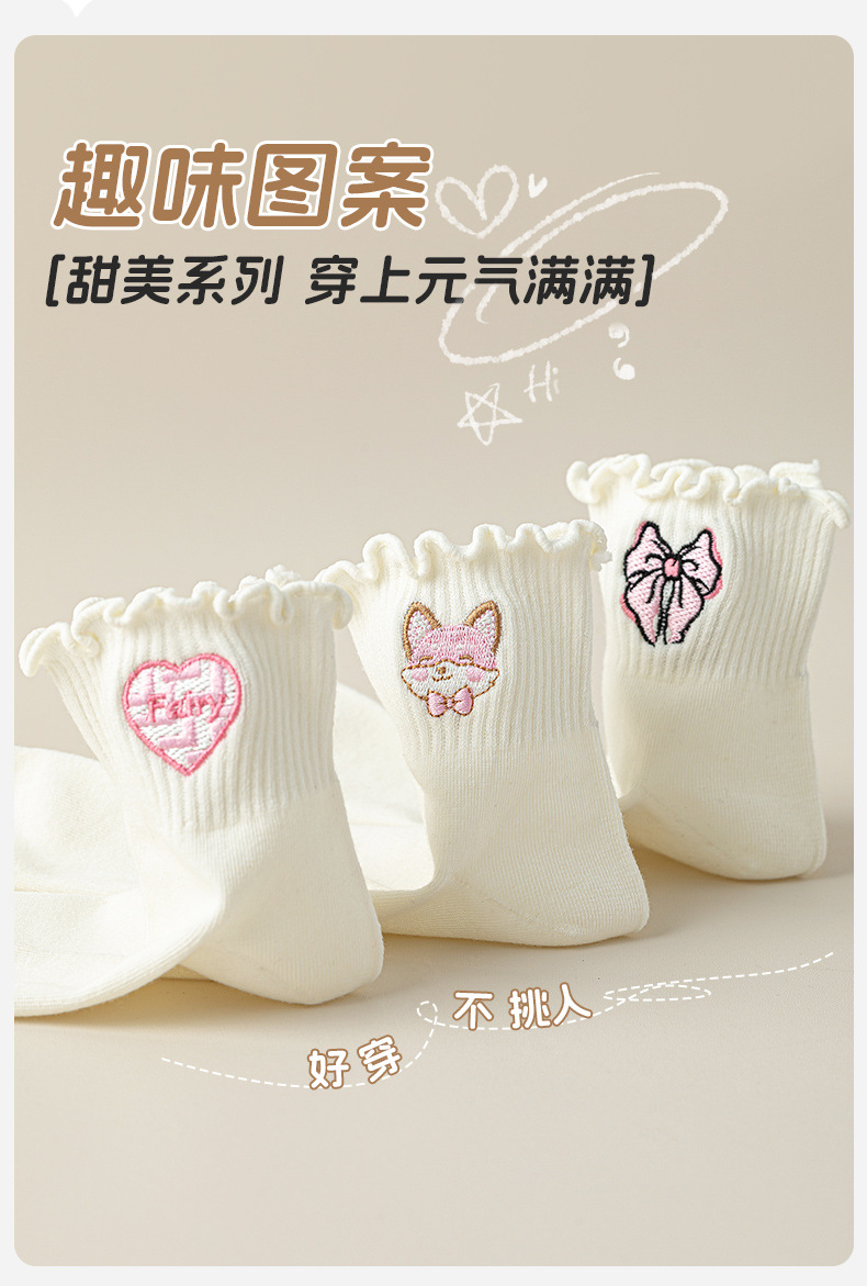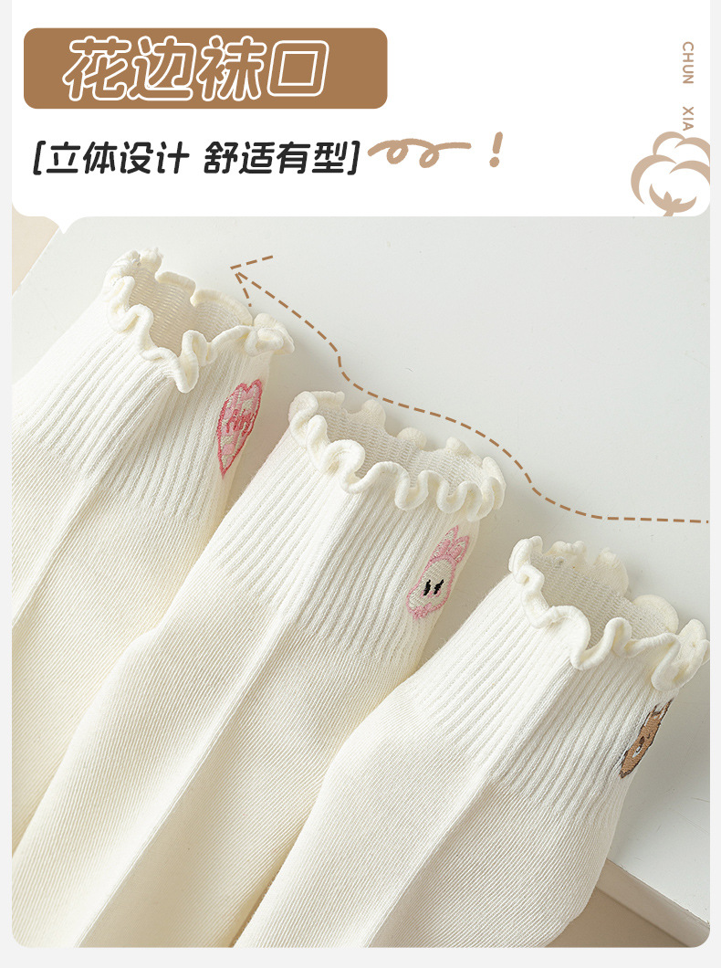 목련잎 자수 양말 면 소재 여성용 컬리 양말 2025 신상품 도매 주지 원산지 공장
