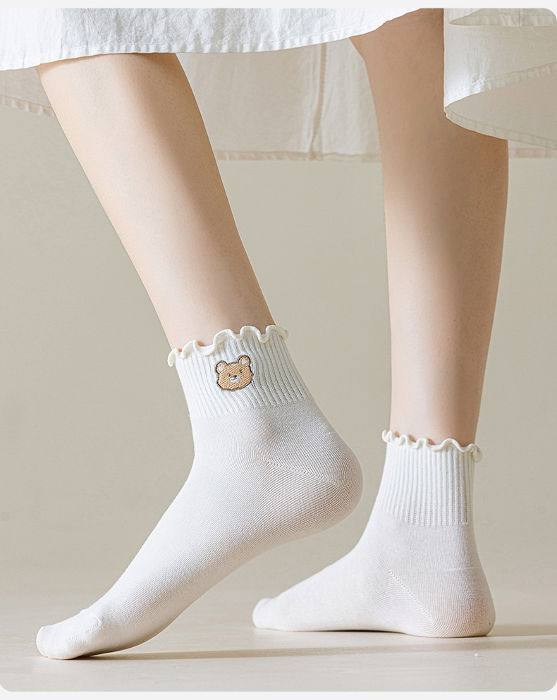 목련잎 자수 양말 면 소재 여성용 컬리 양말 2025 신상품 도매 주지 원산지 공장스토어 가기