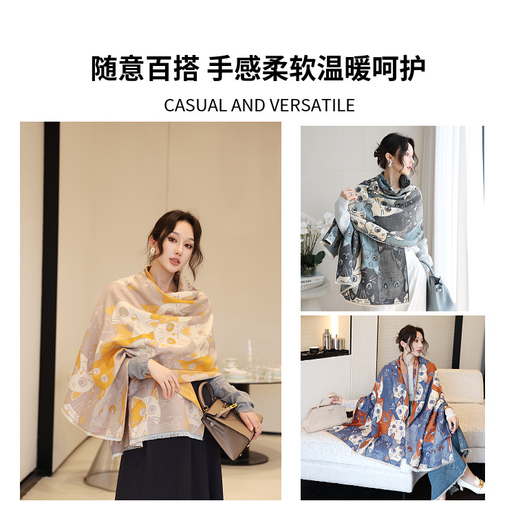 새로운 양면 귀여운 고양이 모방 캐시미어 스카프 여성의 가을과 겨울 두꺼운 따뜻한 올 매치 숄 패션 스카프스토어 가기
