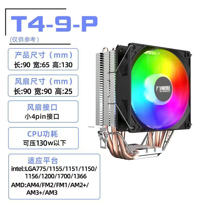9 꼬리 여우 T4 데스크탑 컴퓨터 CPU 쿨러 팬 4 구리 튜브 9 cm 1150/1700 AMD 멀티 플랫폼스토어 가기
