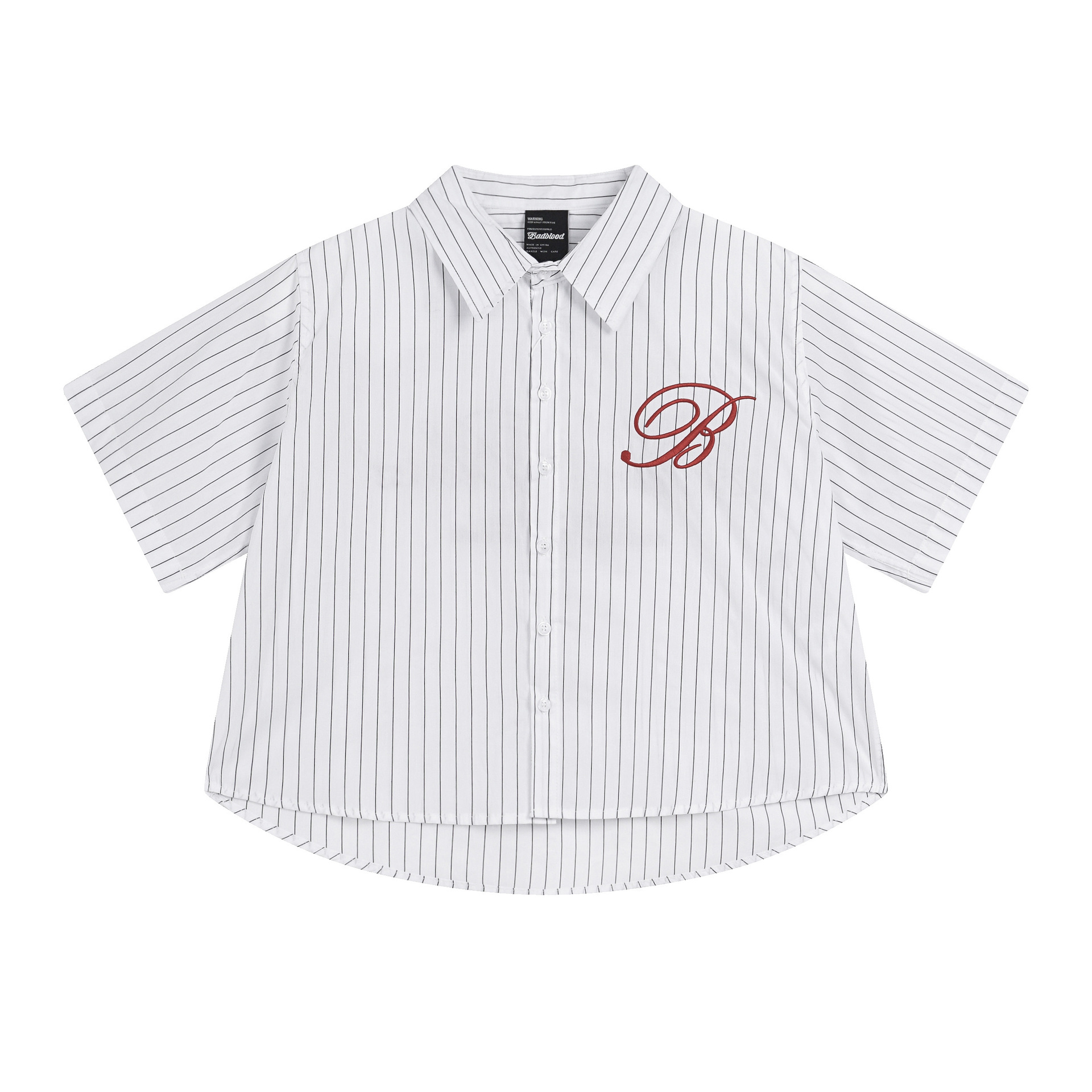 한국 나쁜 혈액 짧은 소매 셔츠 미국 스타일 복고풍 줄무늬 간단한 편지 자수 느슨한 캐주얼 셔츠 남성과 여성