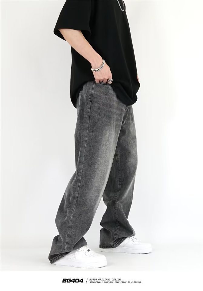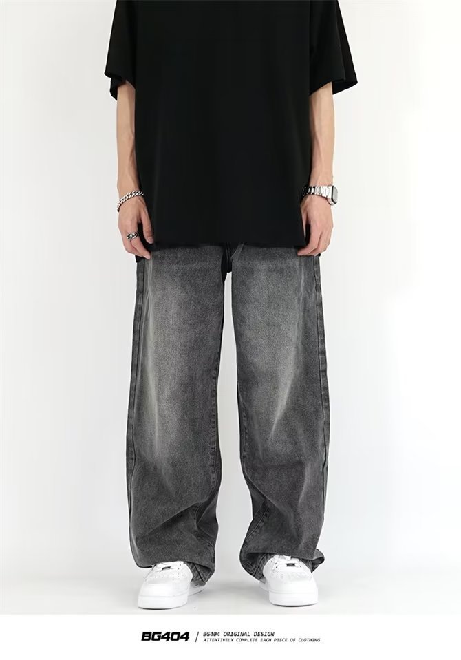 2024 빈티지 씻은 연기 회색 트렌드 청바지 남성용 느슨한 직선 넓은 다리 바지 바지스토어 가기