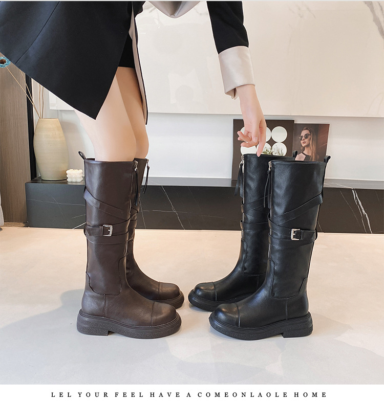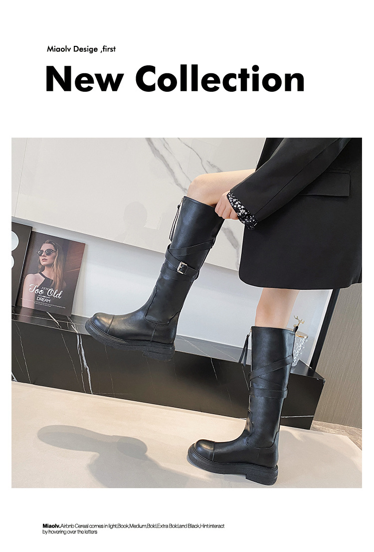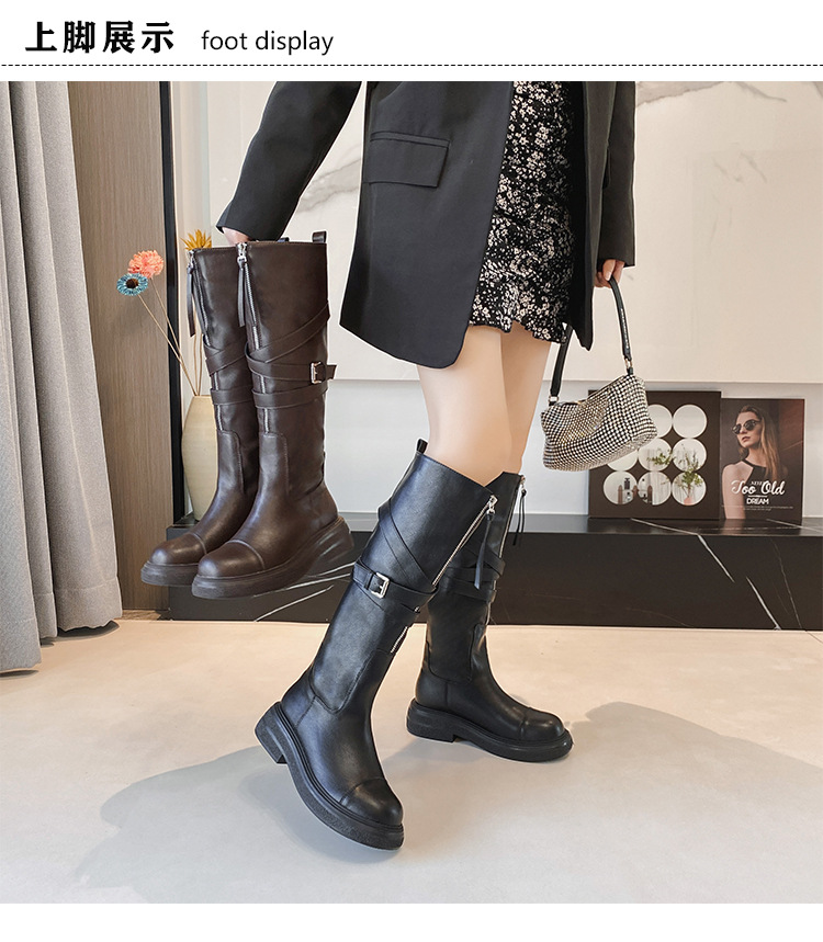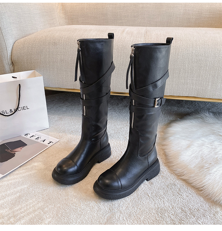 새로운 스타일 부츠 여성 2024 프론트 지퍼 두꺼운 하단 무릎 긴 배럴 나이트 부츠 통통녀 높은 부츠 폭 넓은 마틴 부츠스토어 가기