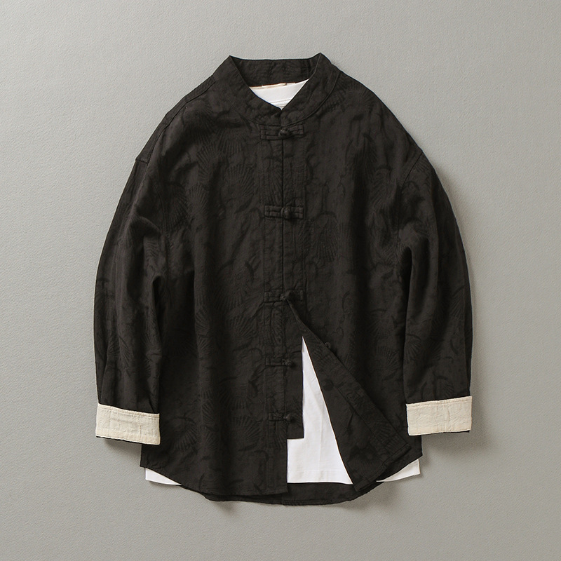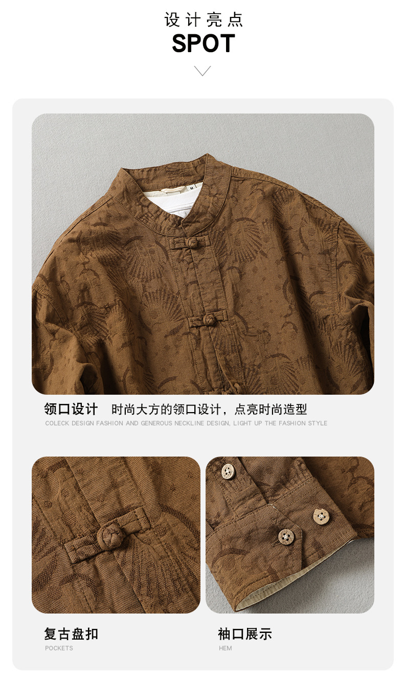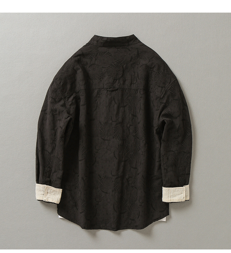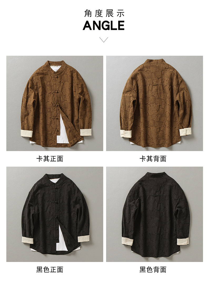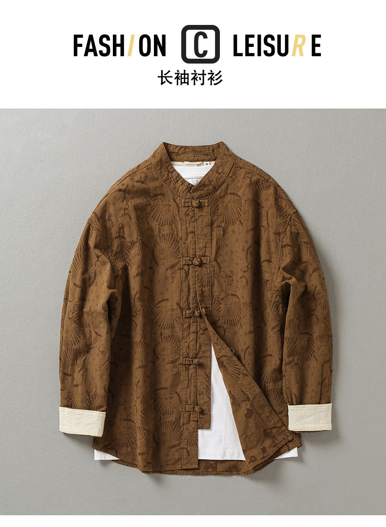 남성용 캐주얼 긴팔 셔츠 2024 가을 새 도착 버튼 국가 스타일 간단한 올 매치 셔츠스토어 가기