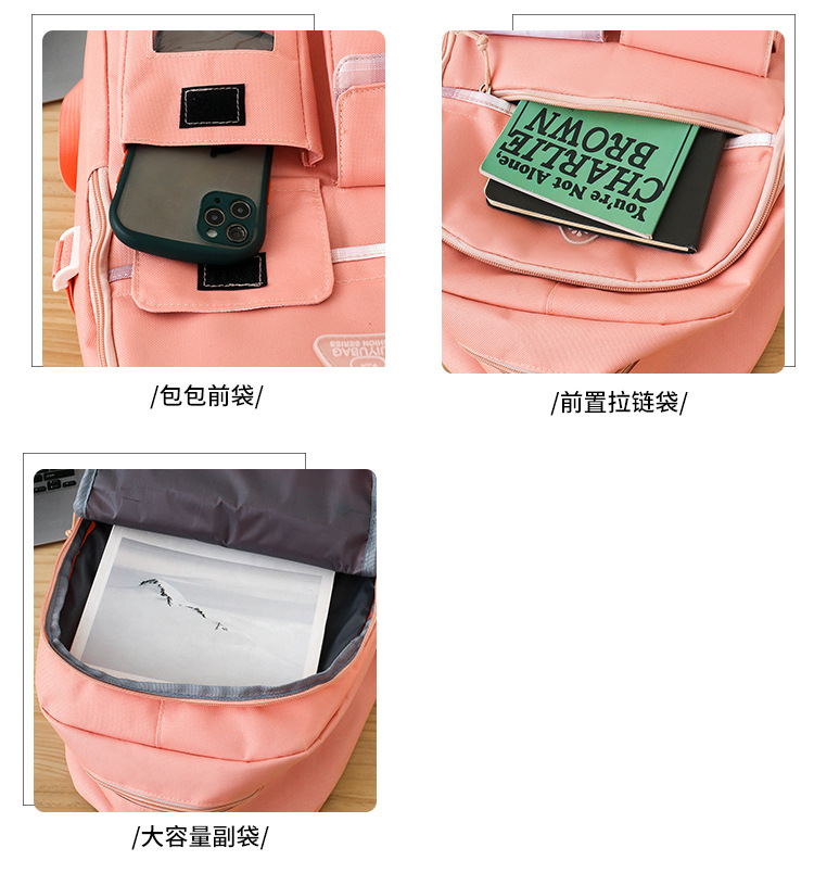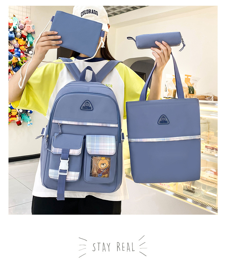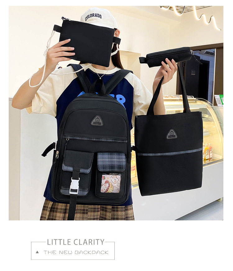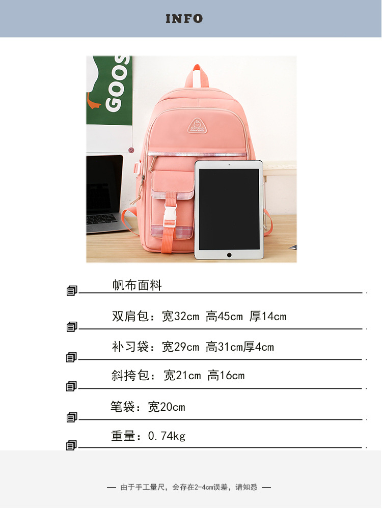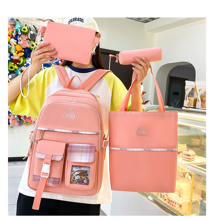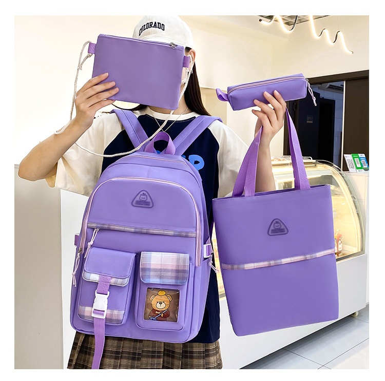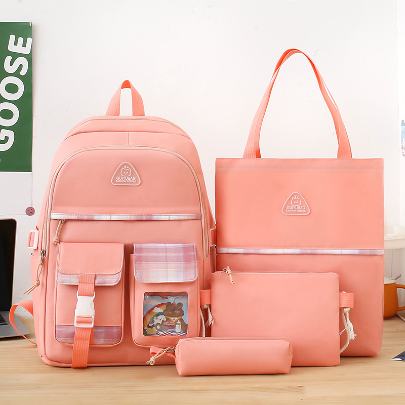 스쿨백 여중생 3 ∼ 6 학년 여중생 경량고교생 대용량 여성 숄더 백팩 4 종 세트