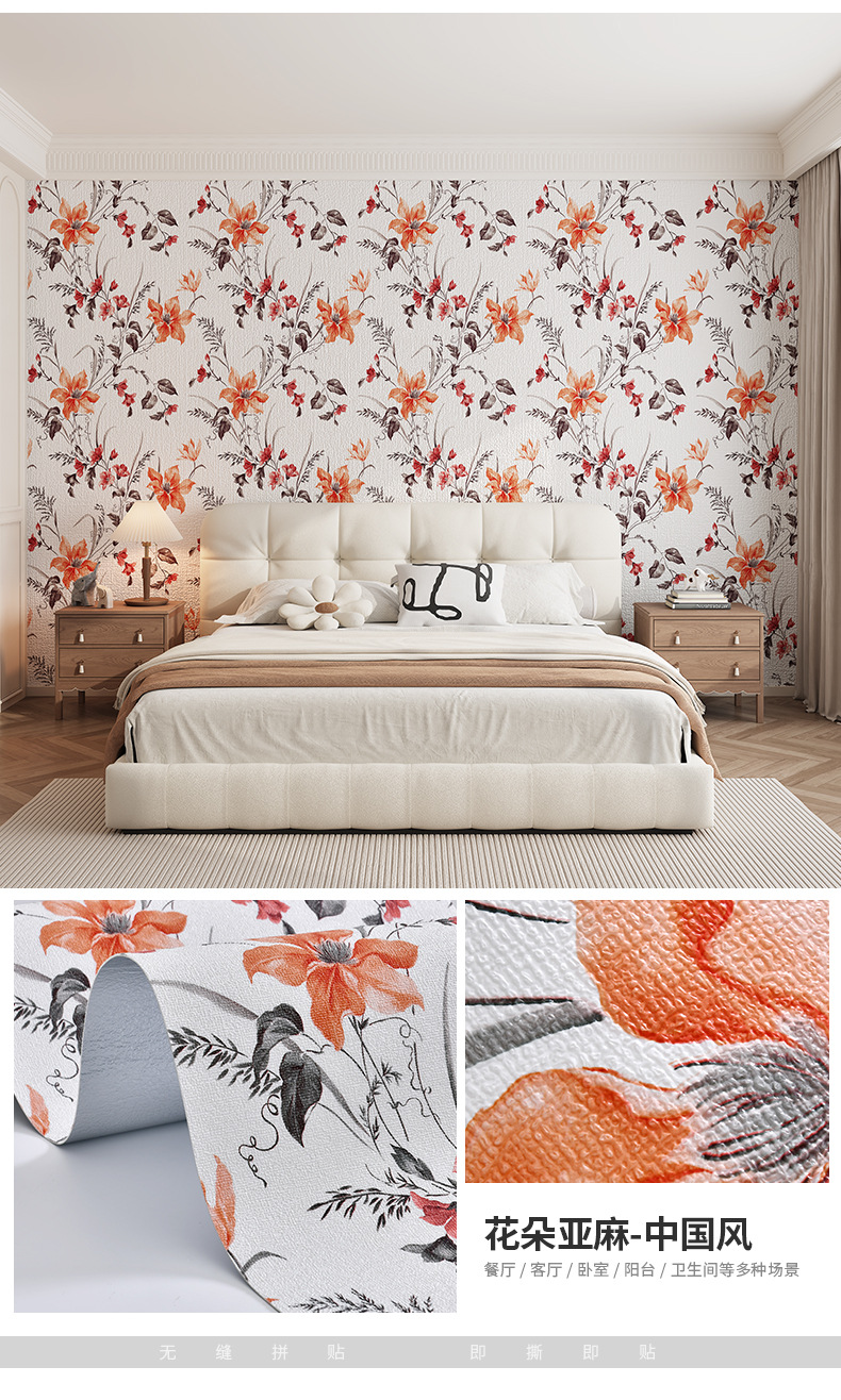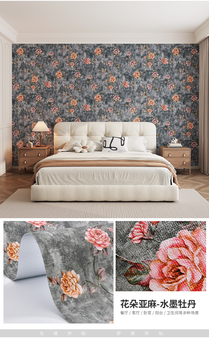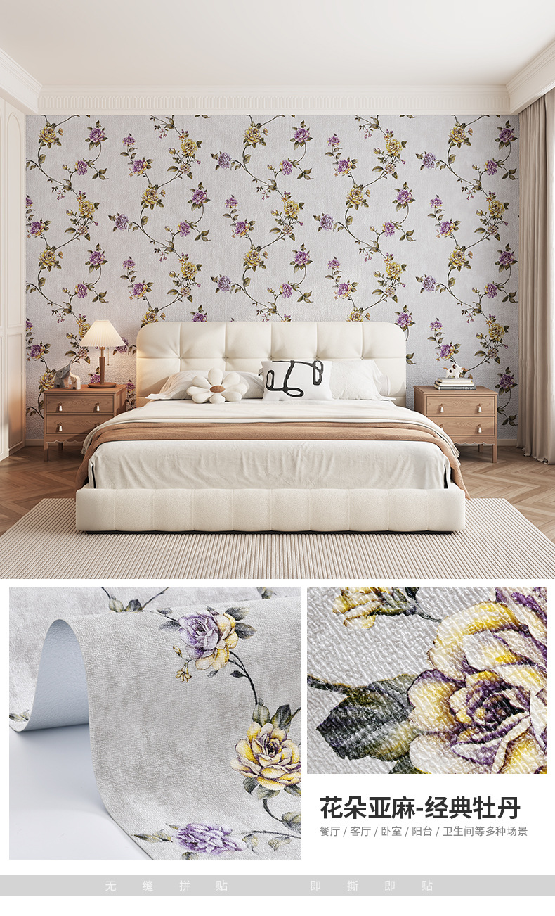 자기 접착 벽지 홈 자체 접착 침실 방 따뜻한 미국 복고풍 두꺼운 프랑스 목가적 인 배경 벽 벽지