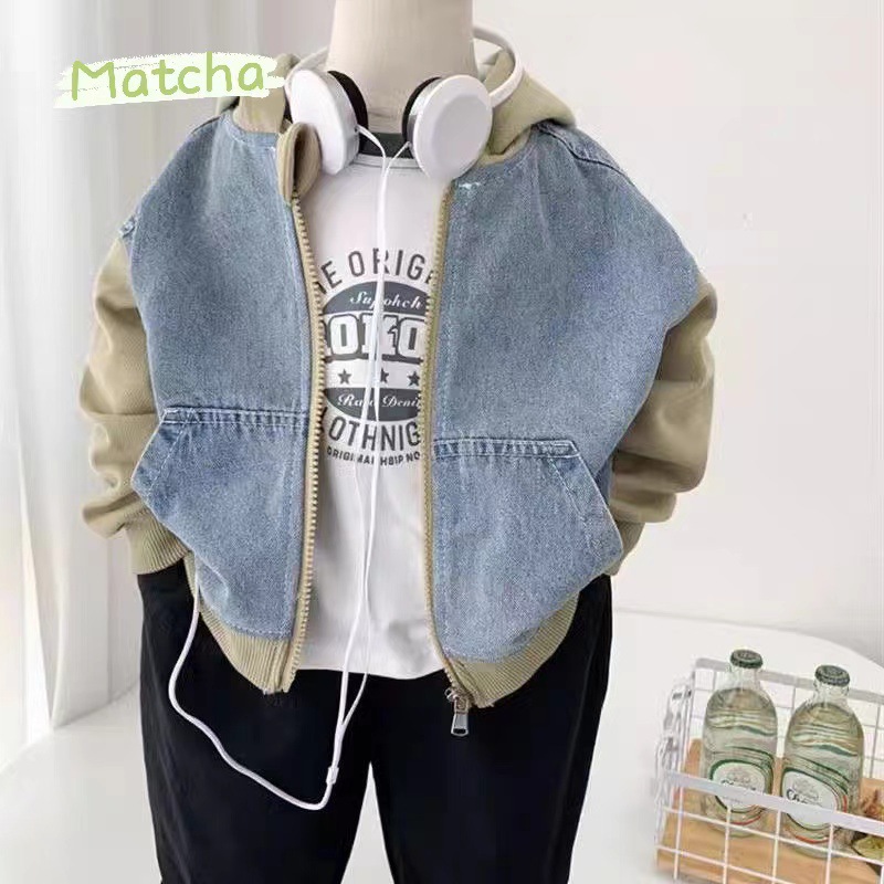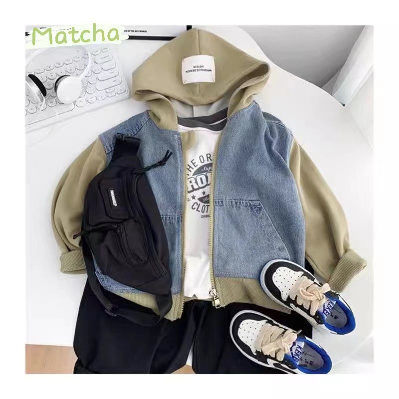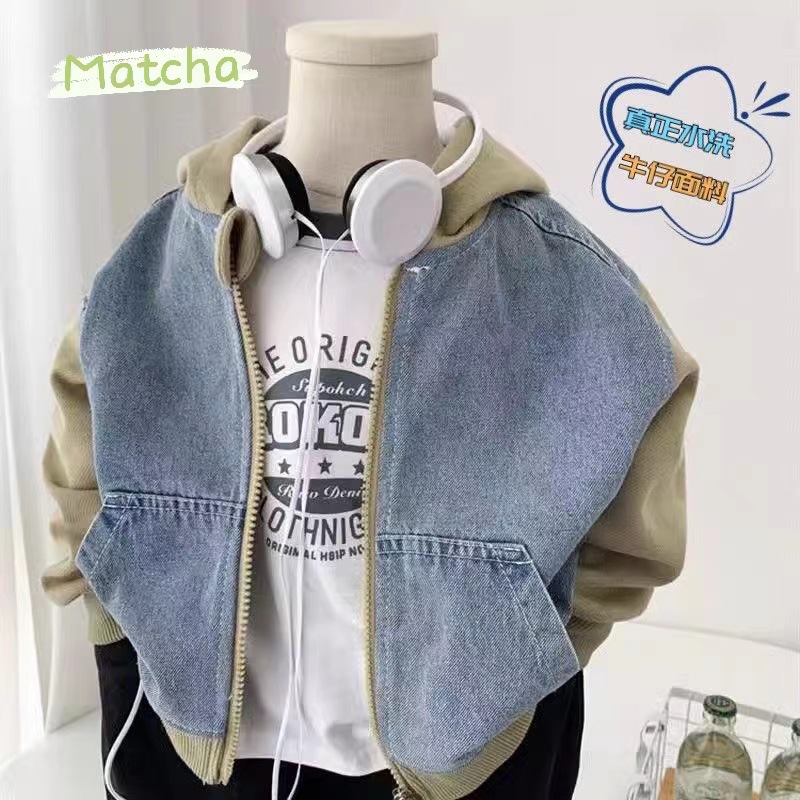 소년의 봄 가을 데님 코트 2024 새로운 한국 어린이 후드 지퍼 셔츠 캐주얼 탑 어린이 더피 핸섬 패션스토어 가기