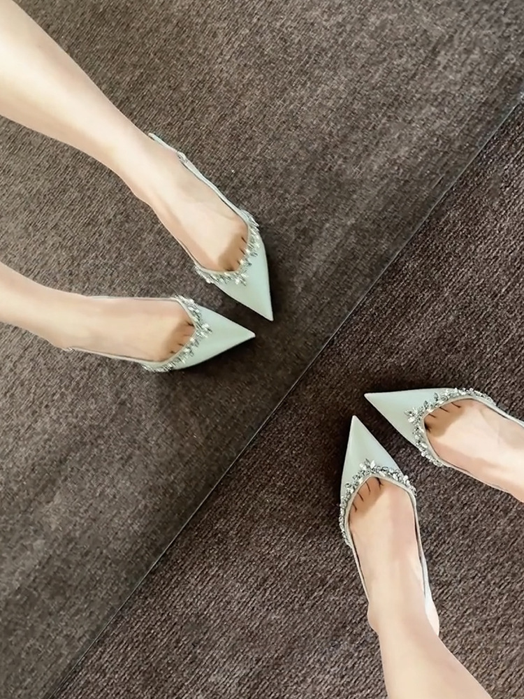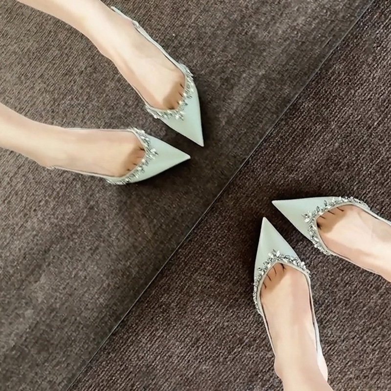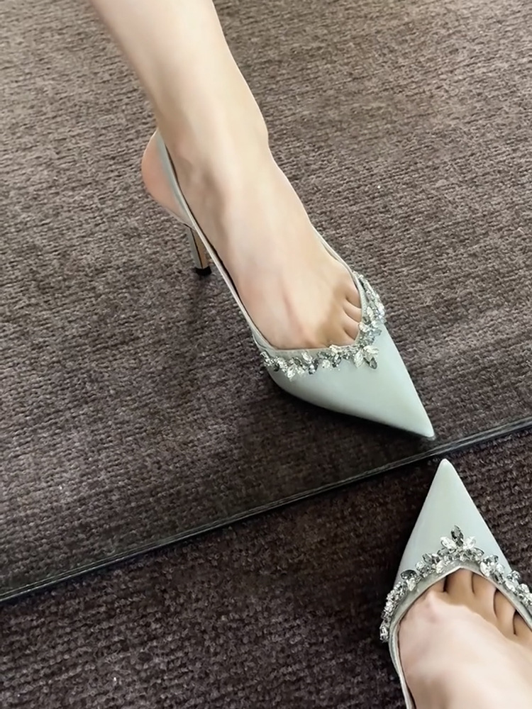 2025 새로운 여름 스타일 하이힐 누드 컬러 라인스톤 섹시한 뾰족한 발가락 우아한 바오터우 샌들 여성용 얇은 발 뒤꿈치