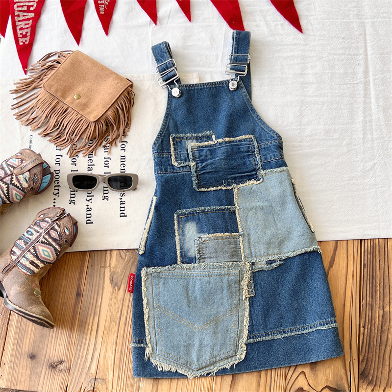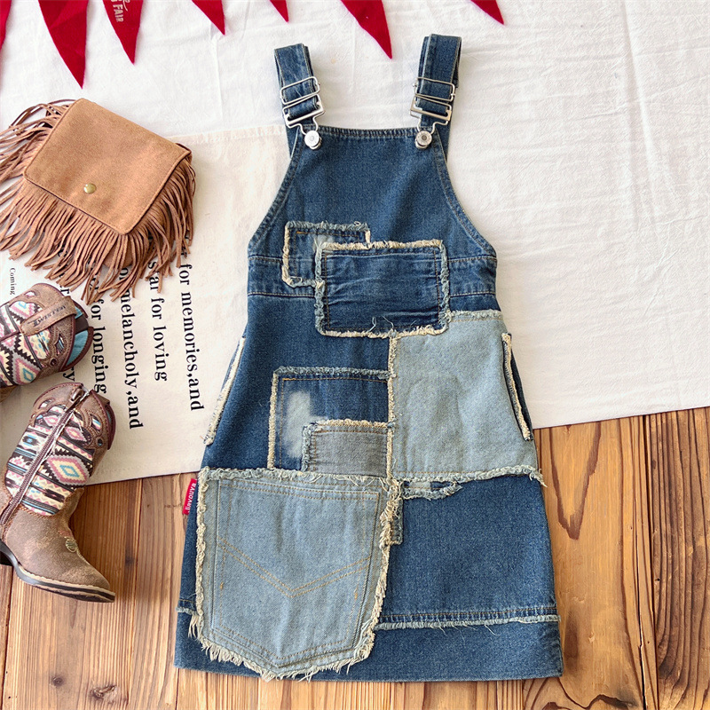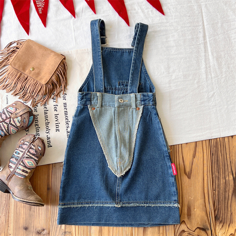 [재고] 일본 중 고대 틈새 아동복 소녀 데님 스트랩 스커트스토어 가기