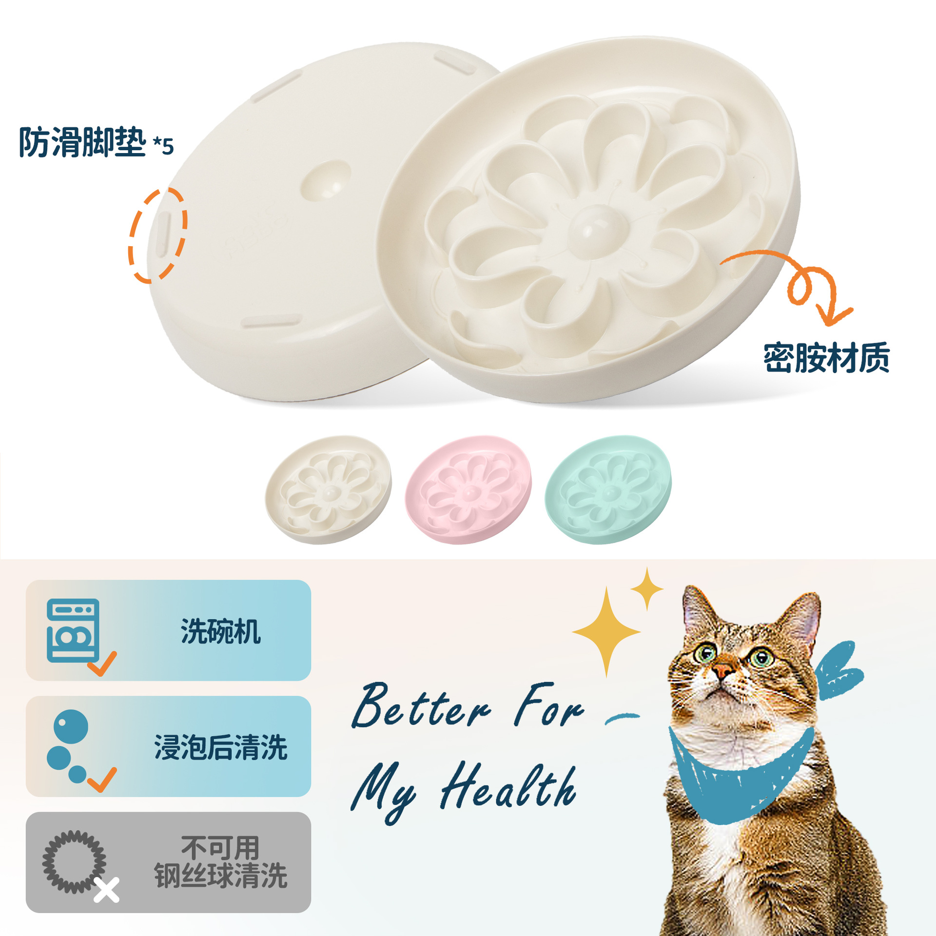 슬로우 푸드 그릇, 고양이 그릇, 노크 방지 고양이 그릇, 애완동물 그릇, 멜라민 미끄럼 방지 고양이 먹이 그릇, 고양이 먹이 그릇, 고양이와 강아지 먹이