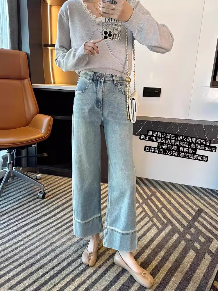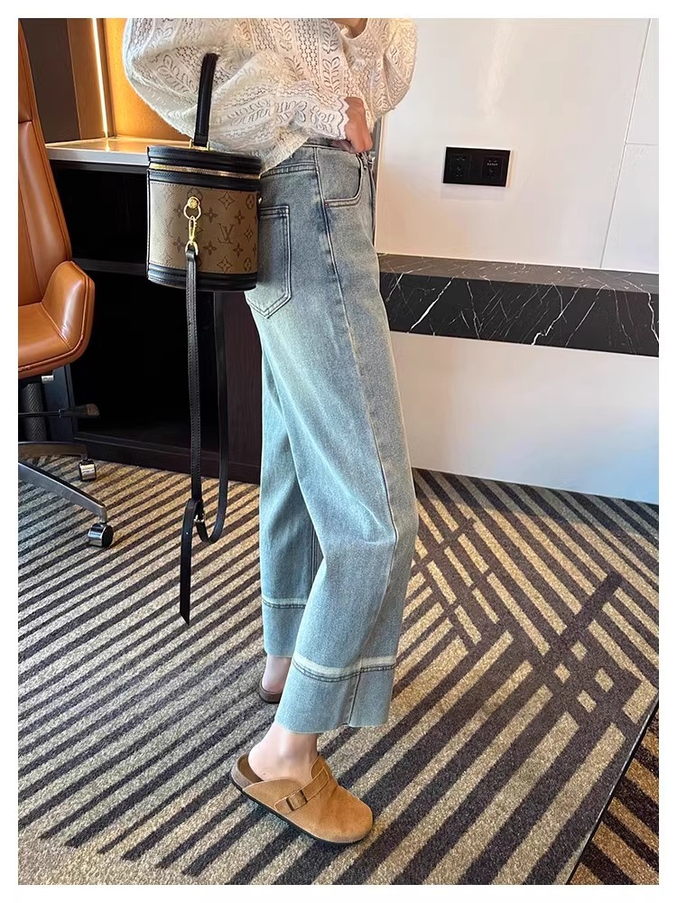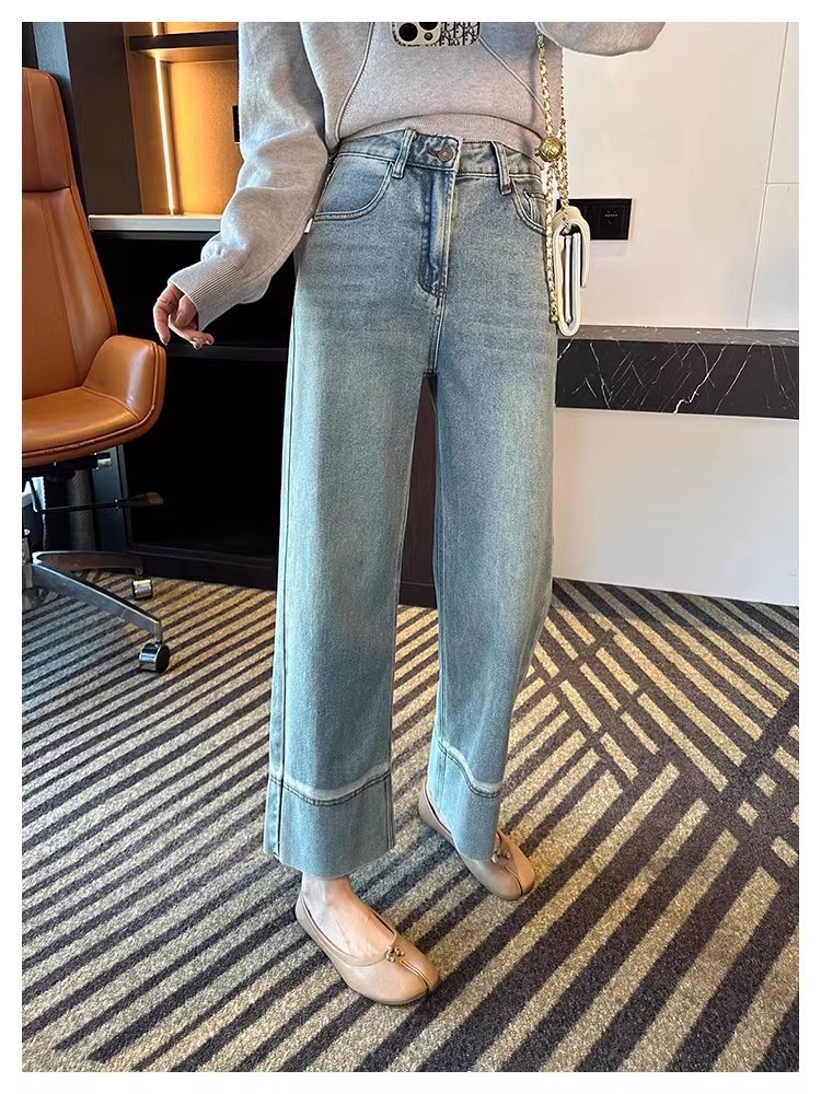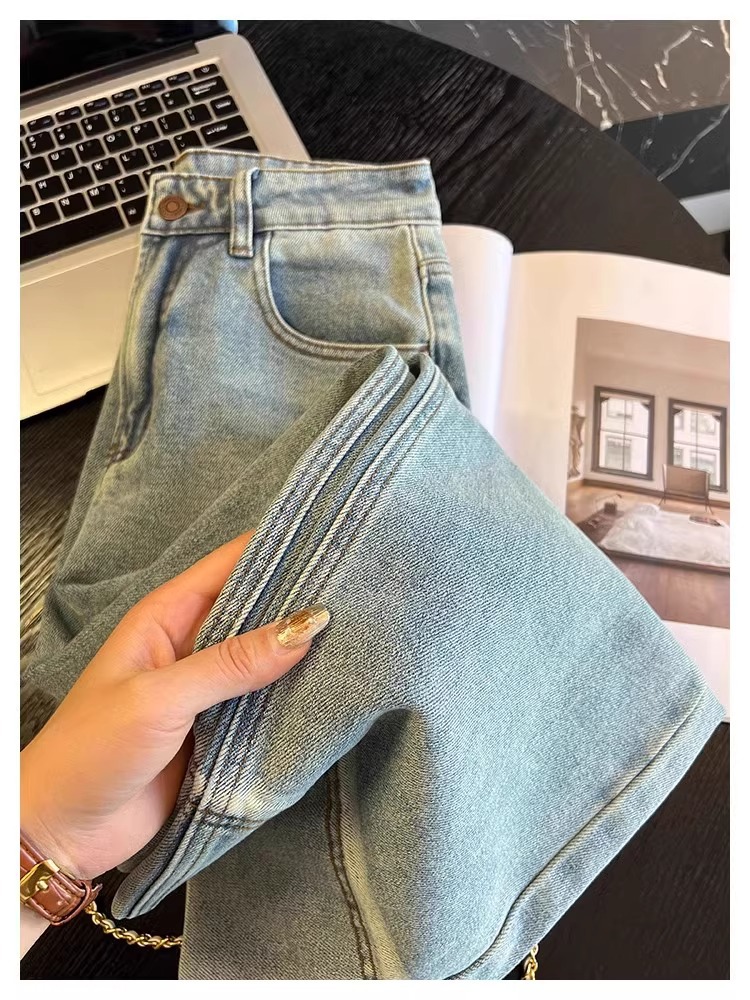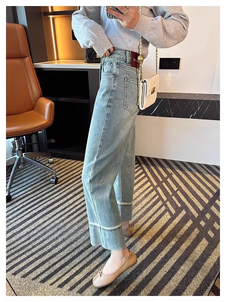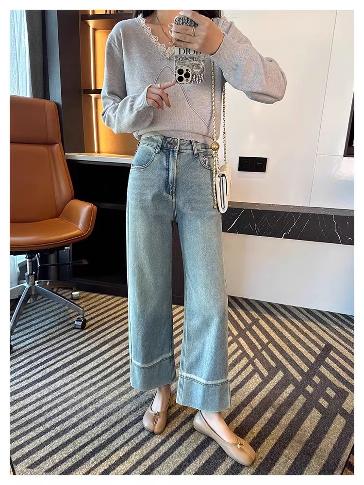 플러스 사이즈 빈티지 라이트 컬러 자른 청바지 여성의 봄과 가을 통통녀 높은 허리 슬리밍 느슨한 짧은 스트레이트 넓은 다리 바지스토어 가기