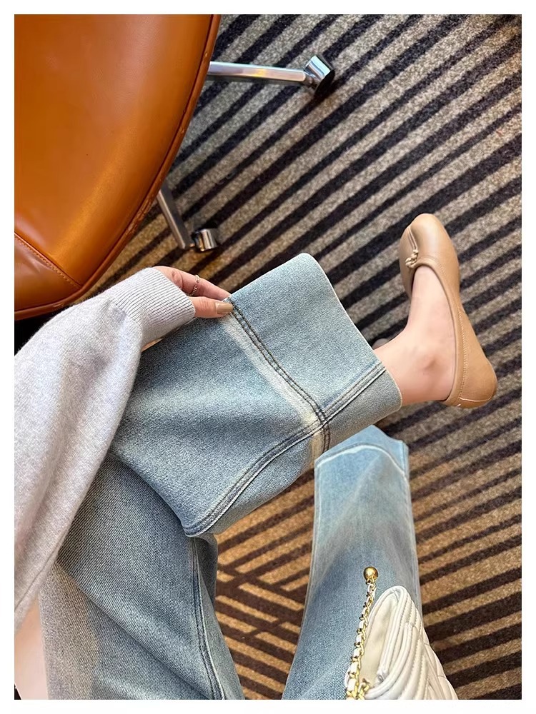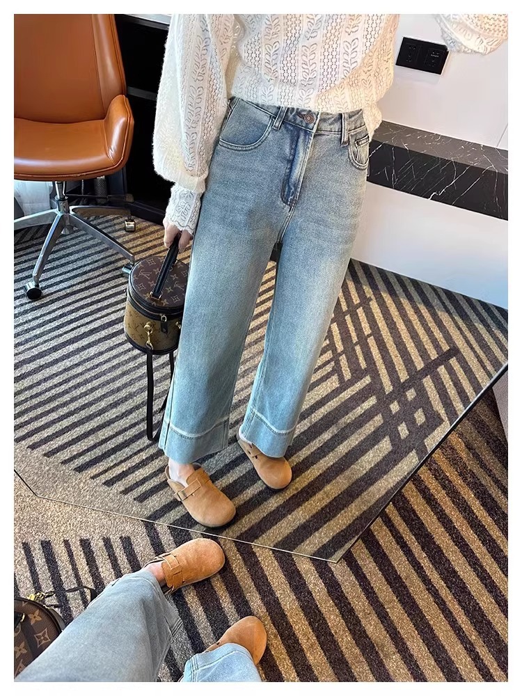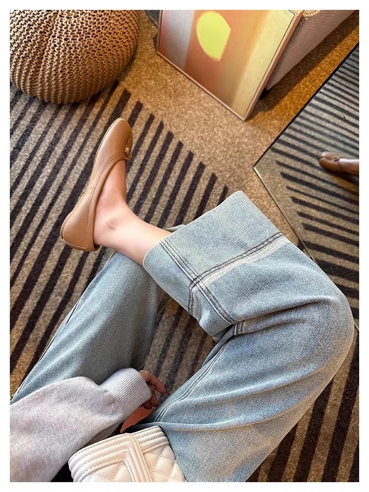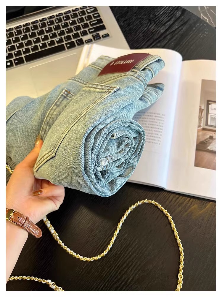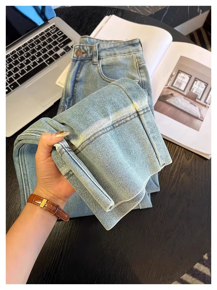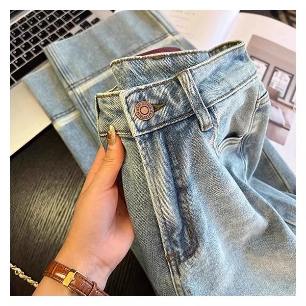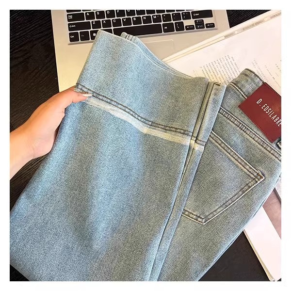 플러스 사이즈 빈티지 라이트 컬러 자른 청바지 여성의 봄과 가을 통통녀 높은 허리 슬리밍 느슨한 짧은 스트레이트 넓은 다리 바지스토어 가기