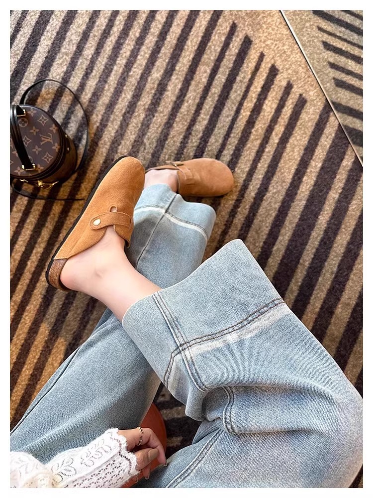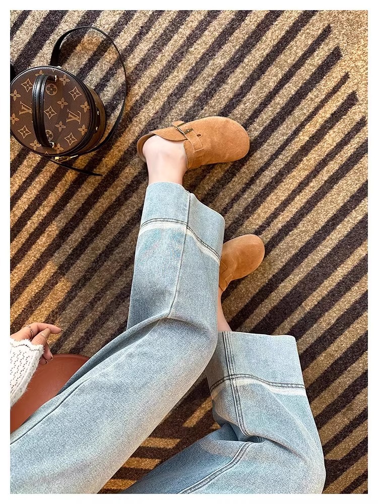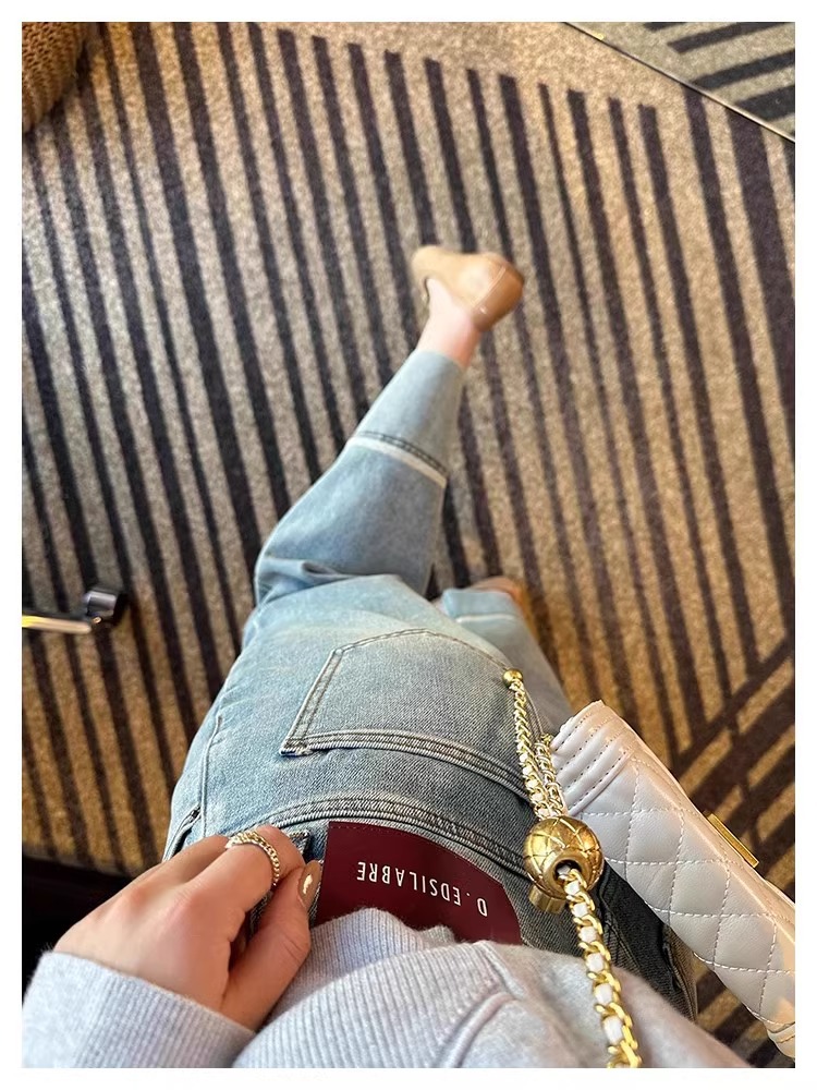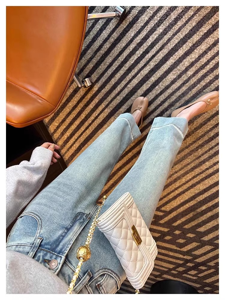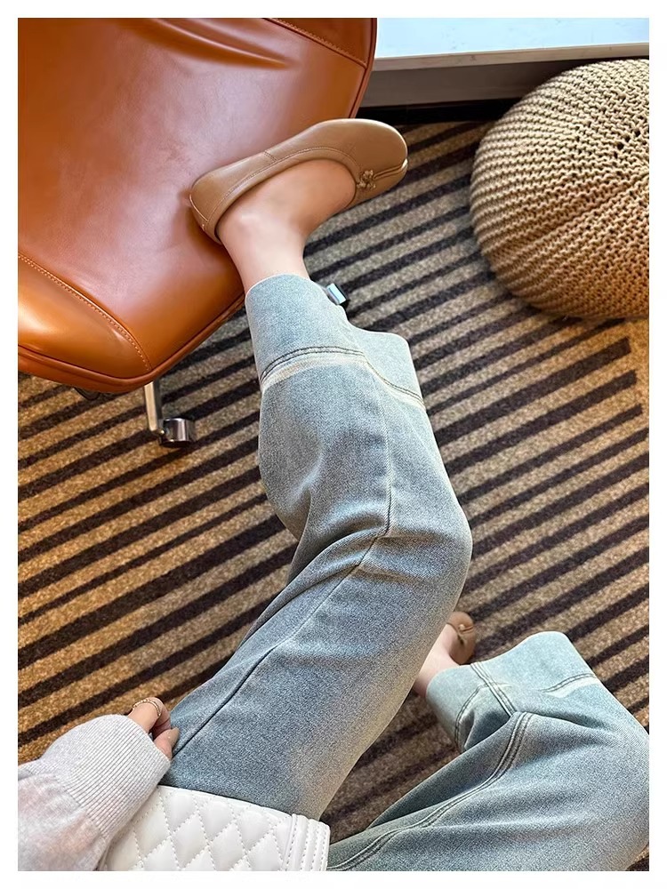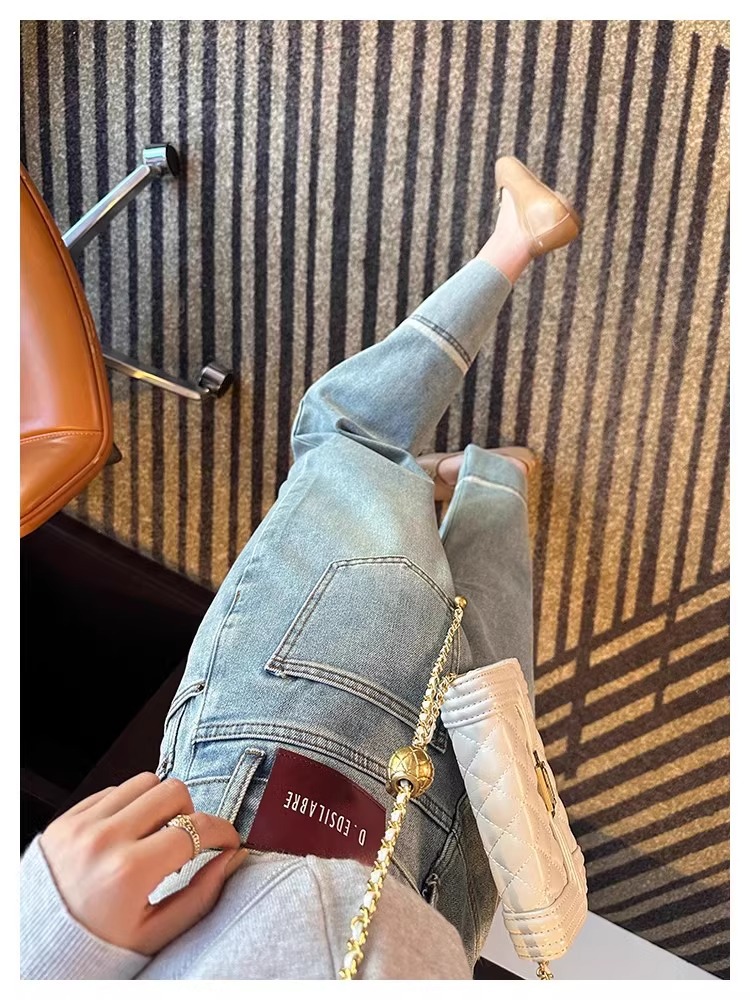 플러스 사이즈 빈티지 라이트 컬러 자른 청바지 여성의 봄과 가을 통통녀 높은 허리 슬리밍 느슨한 짧은 스트레이트 넓은 다리 바지스토어 가기