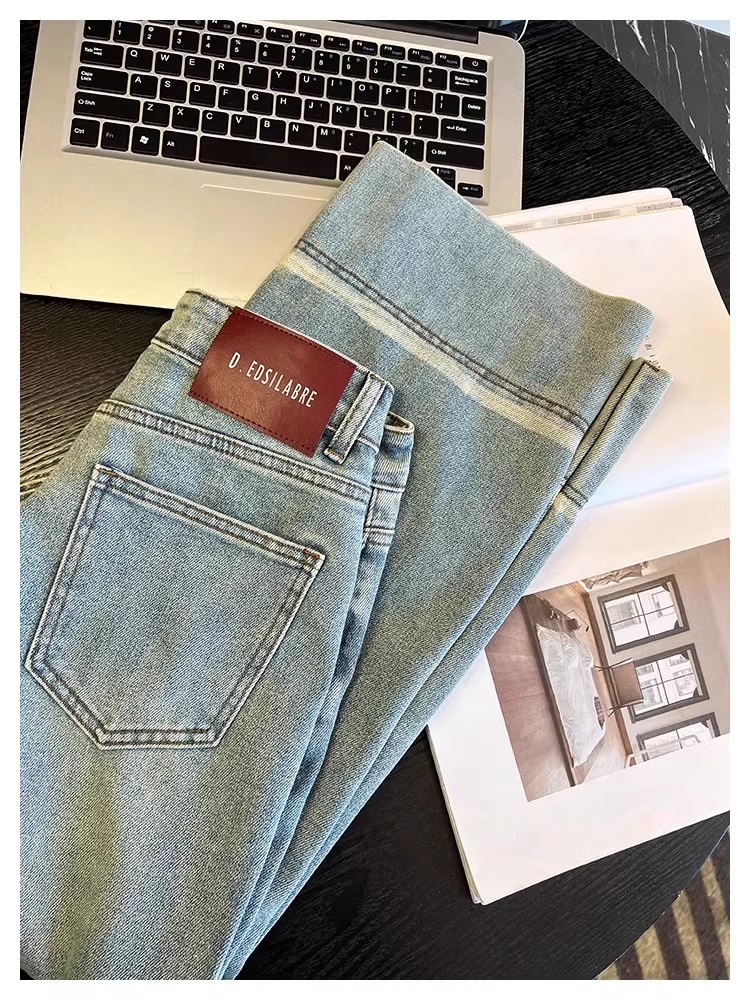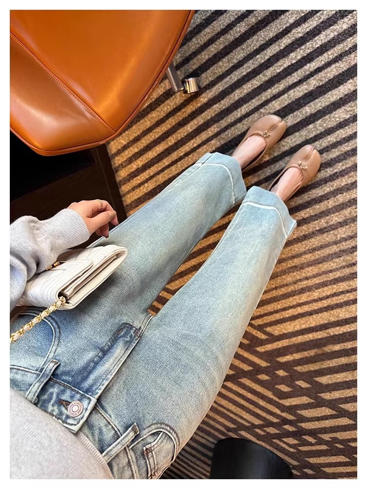플러스 사이즈 빈티지 라이트 컬러 자른 청바지 여성의 봄과 가을 통통녀 높은 허리 슬리밍 느슨한 짧은 스트레이트 넓은 다리 바지