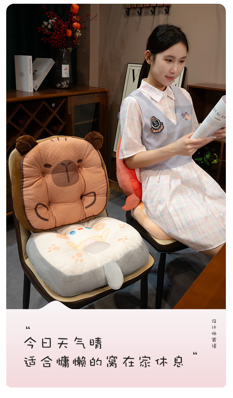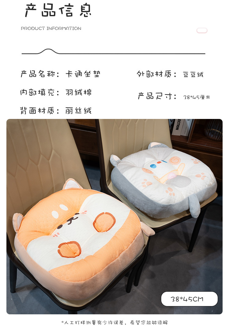 여름용 플러시 카툰 의자 쿠션, 교실 및 사무실용 장시간 착석 시트 쿠션, PP 코튼 허리 보호 쿠션스토어 가기