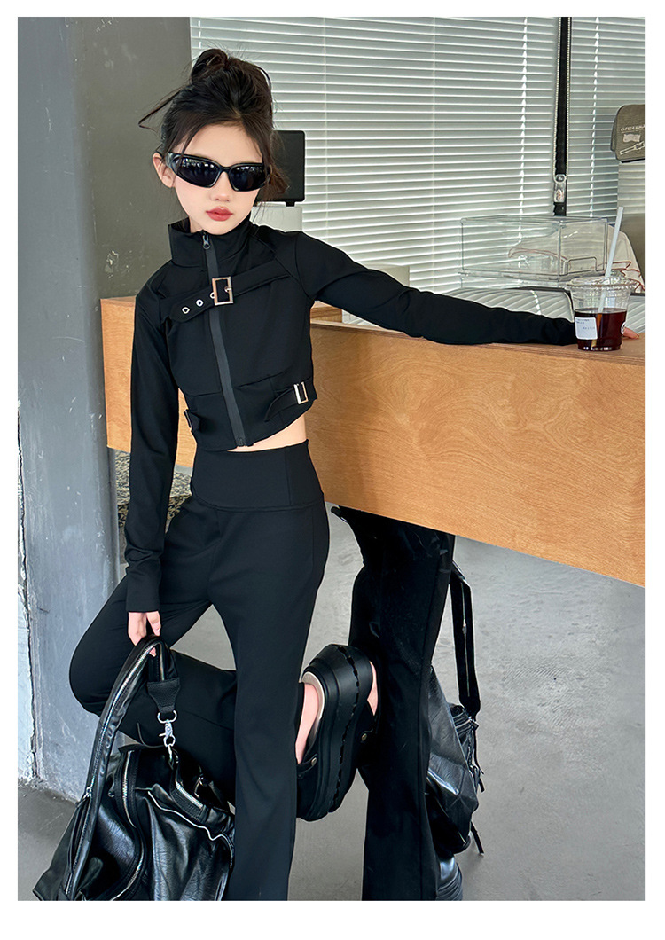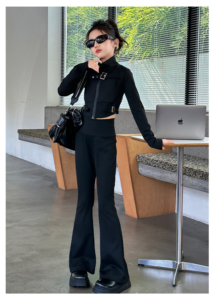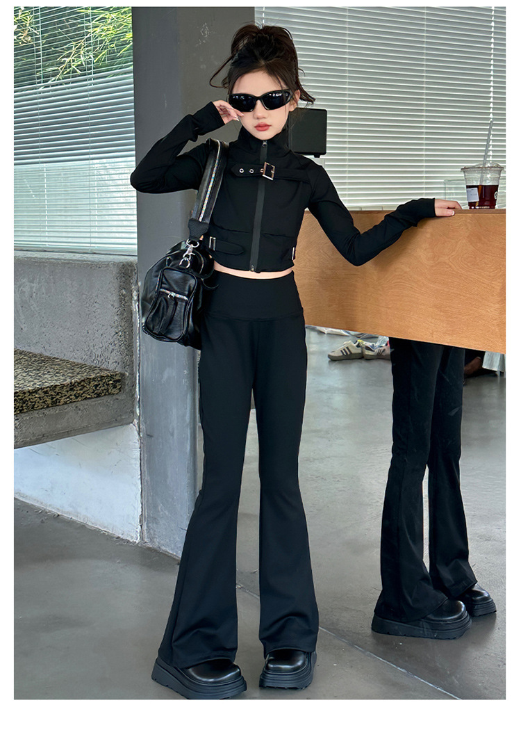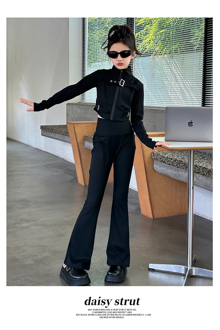 소녀 세트 2024 새로운 어린이 온라인 인기 외국 스타일 가을 원피스 큰 소년 소녀 바비 플래 바지 2 조각 세트