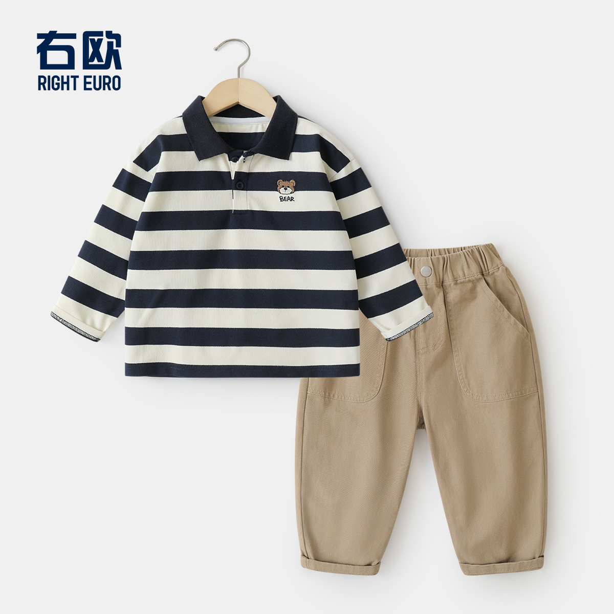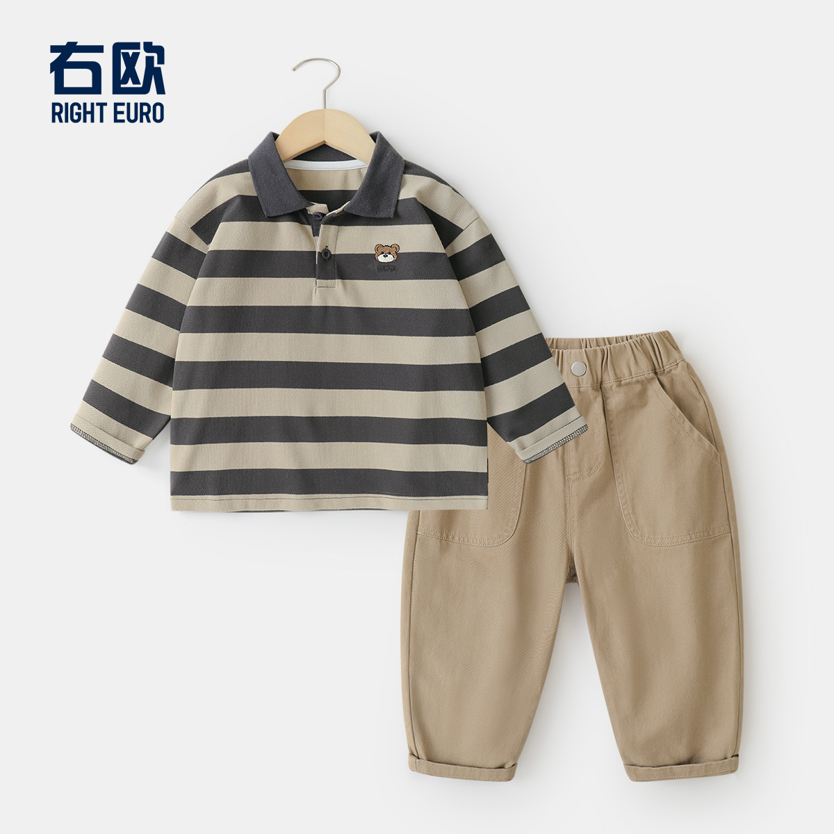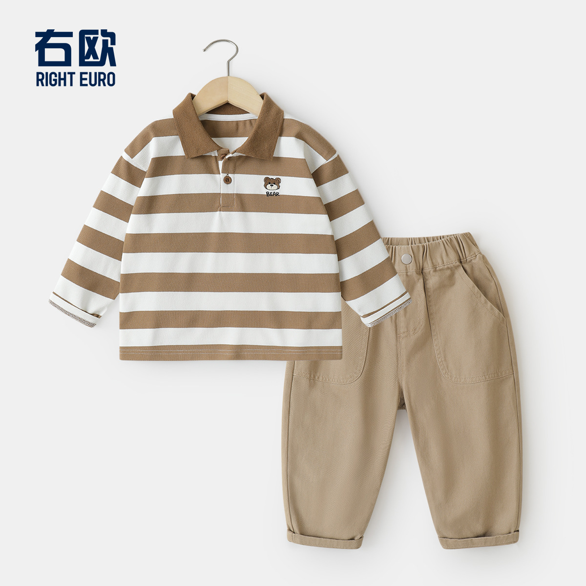 소년 폴로 긴팔 바지 정장 봄, 가을 아동 의류 아동 아기 스타일 2025 새로운 가을 UZ132