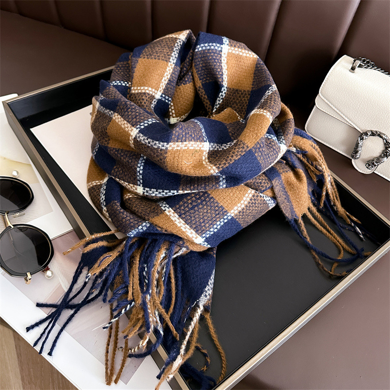 시니어 커플 캐시미어 격자 무늬 따뜻한 목도리 스카프 유니섹스 가을 겨울 패션 올 매치 술 스카프