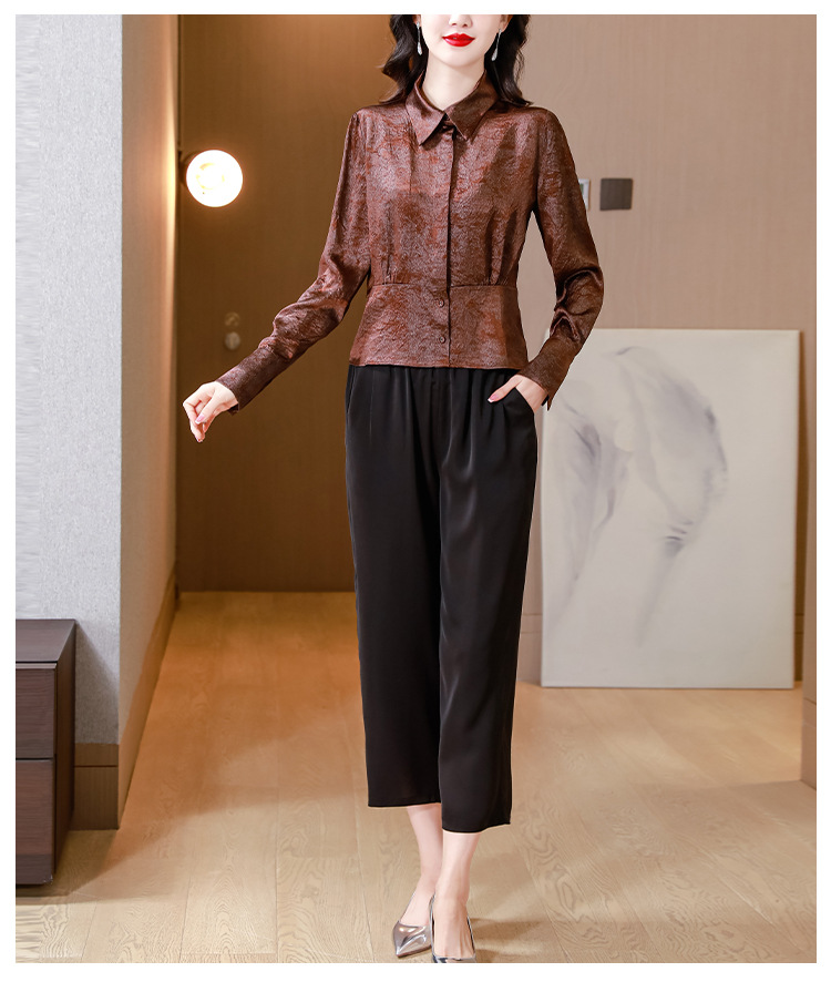 가을 2024 새로운 긴 소매 셔츠 여성의 가을 새로운 우아한 짧은 재킷 유행 서양식 어머니 탑