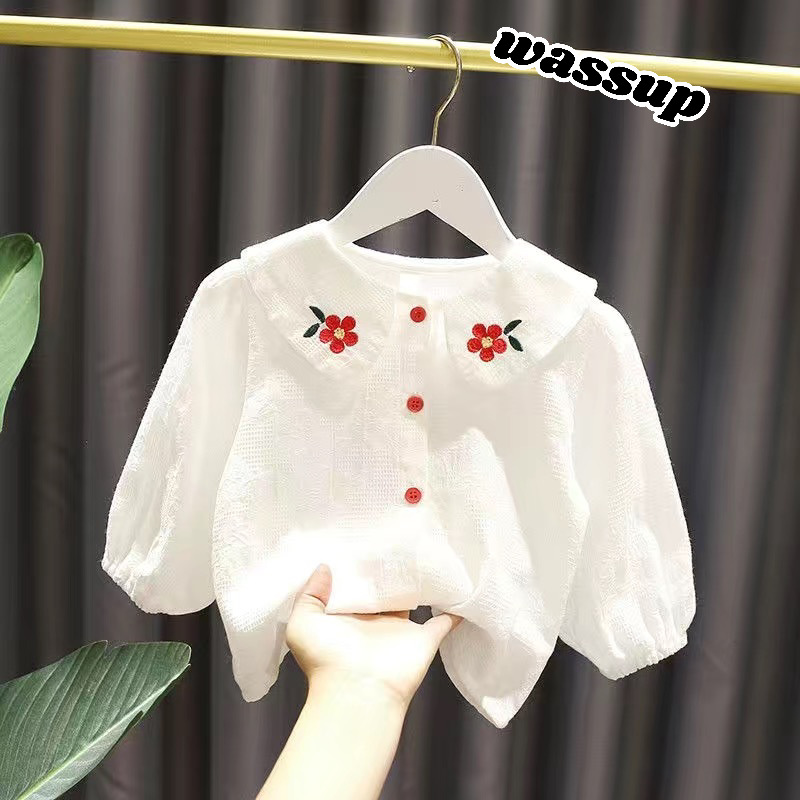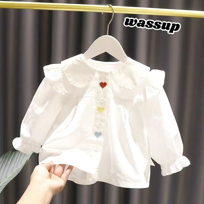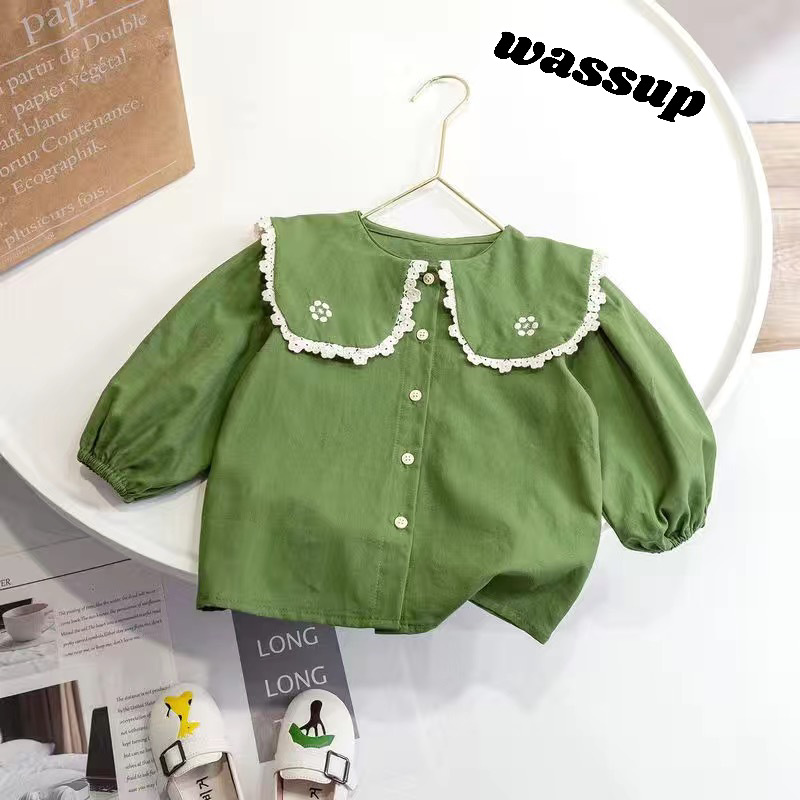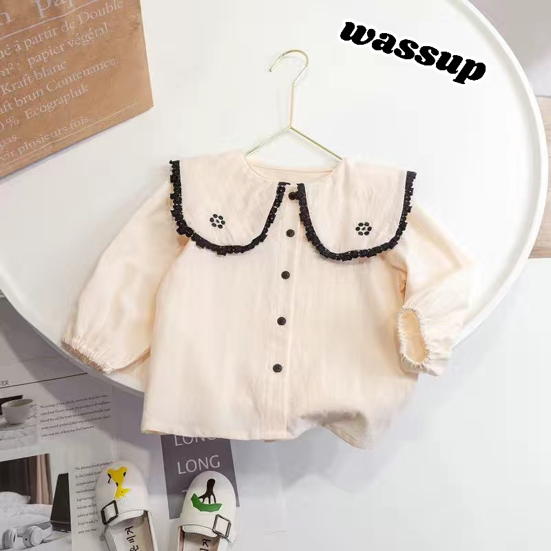 봄 소녀 셔츠 귀여운 인형 칼라 베이스 셔츠 여성 보물 봄 올 매치 탑 어린이 서양식 한국 스타일 탑