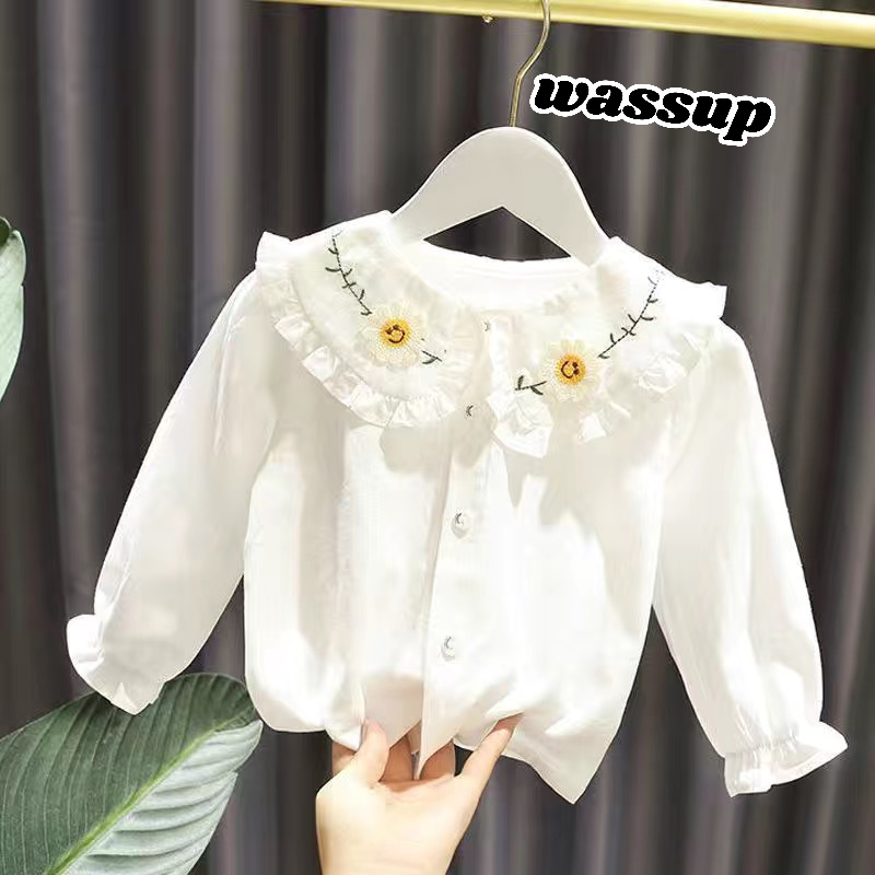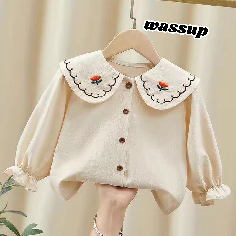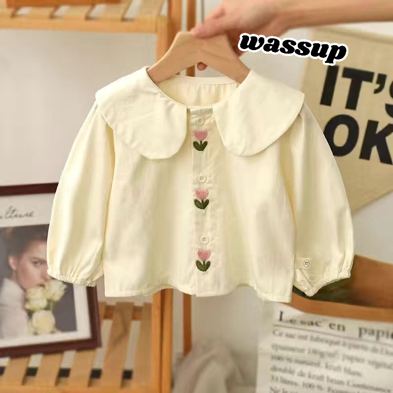 봄 소녀 셔츠 귀여운 인형 칼라 베이스 셔츠 여성 보물 봄 올 매치 탑 어린이 서양식 한국 스타일 탑스토어 가기