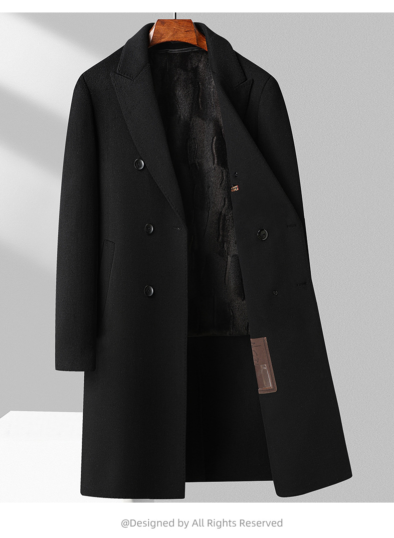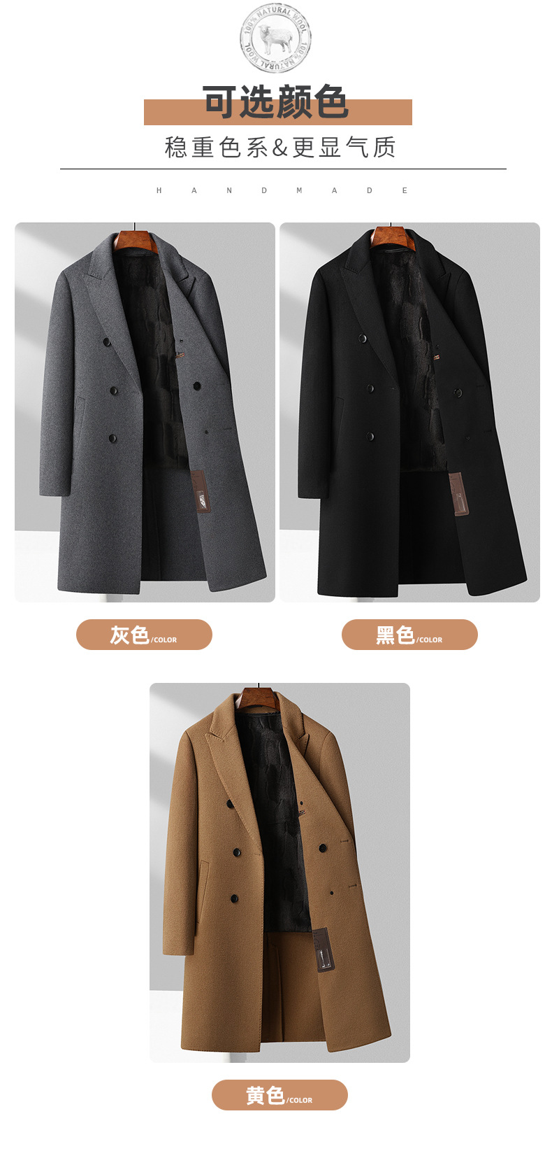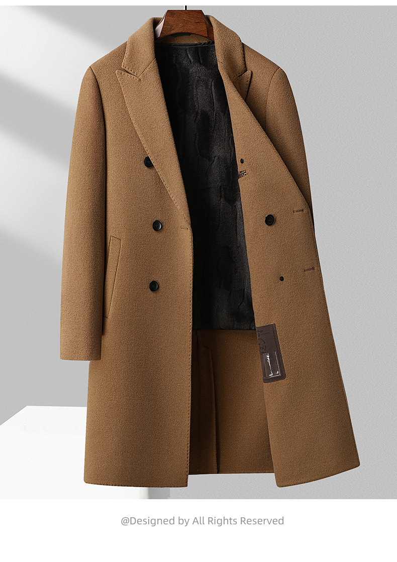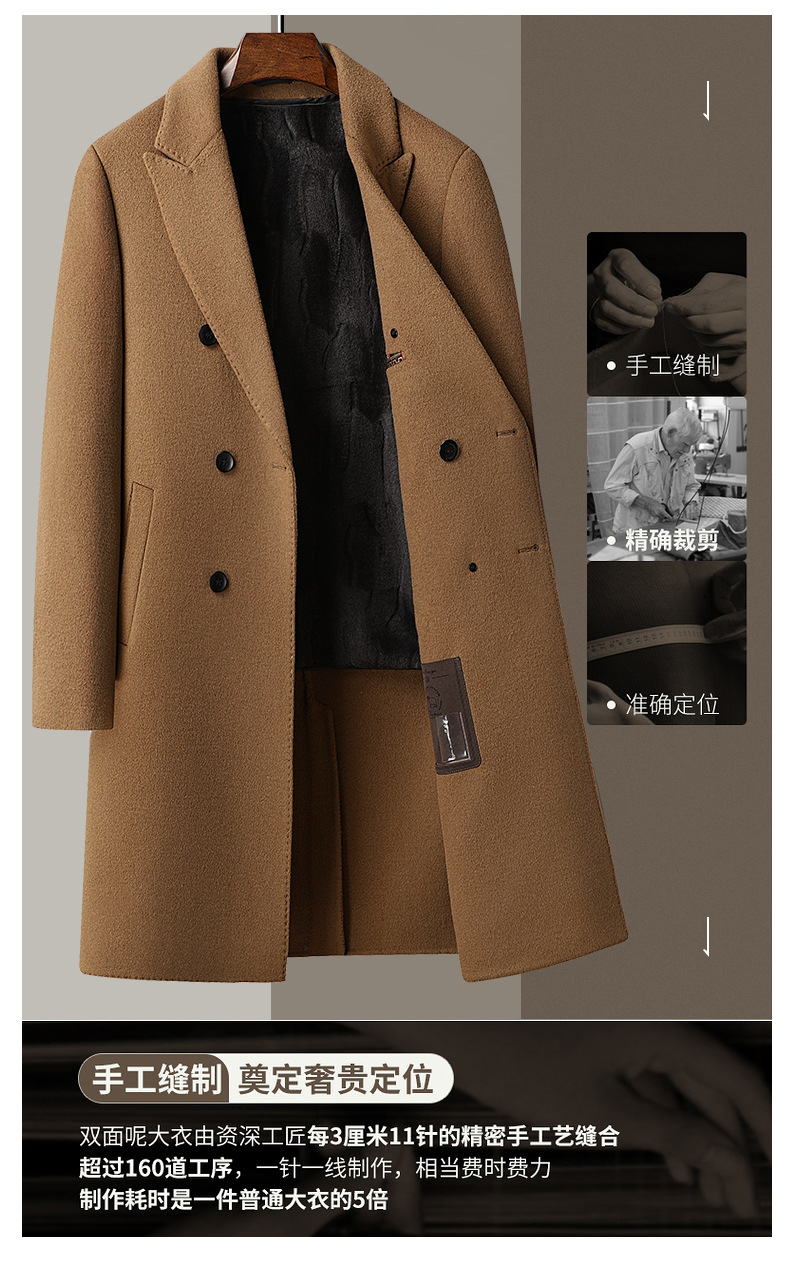 100% 울 더블 브레스티드 무릎 아래 길이 울 코트 2025 가을 겨울 골드 벨벳 안감 양면 울 코트 남성용스토어 가기