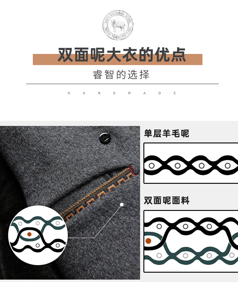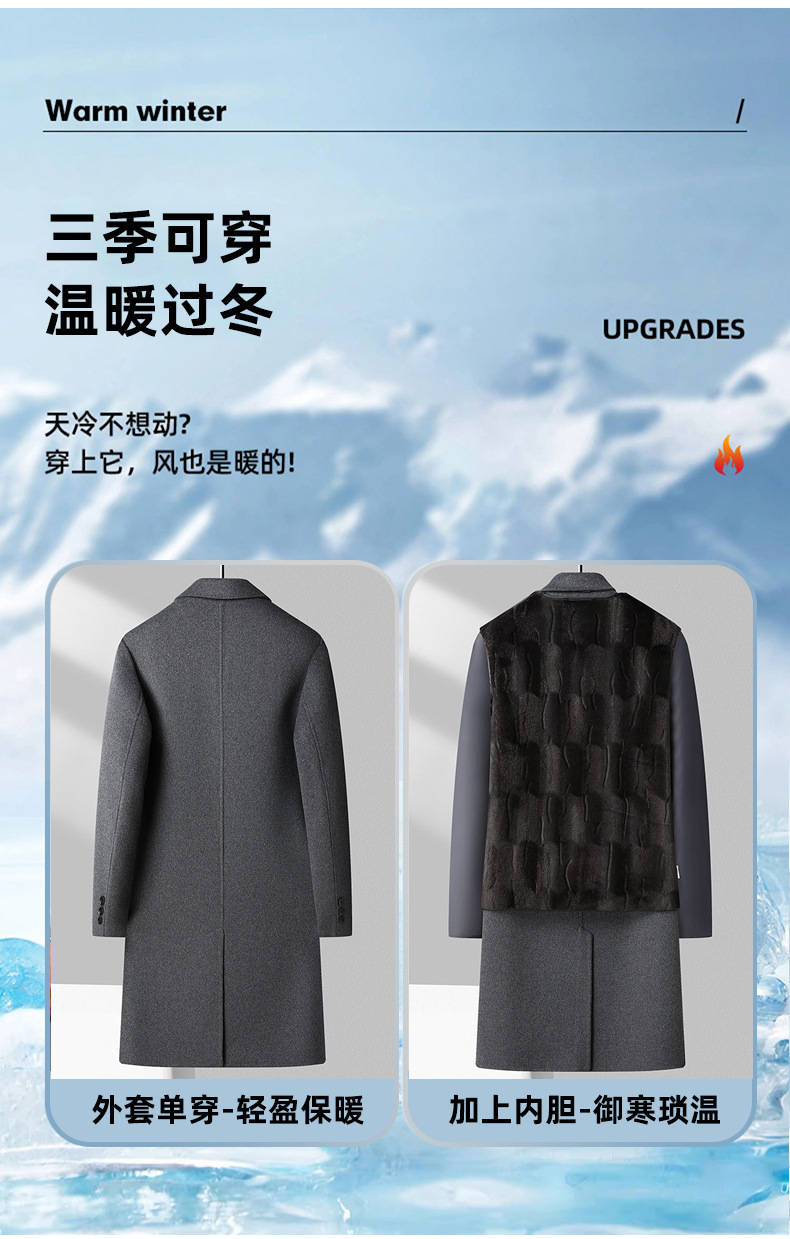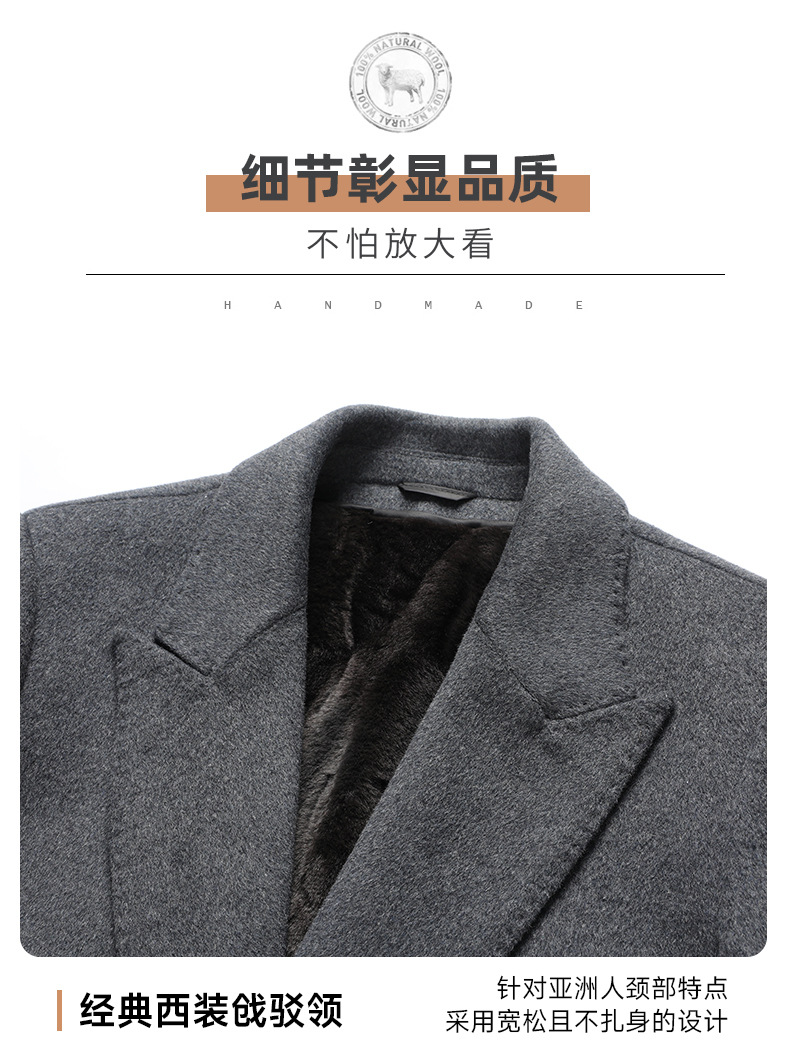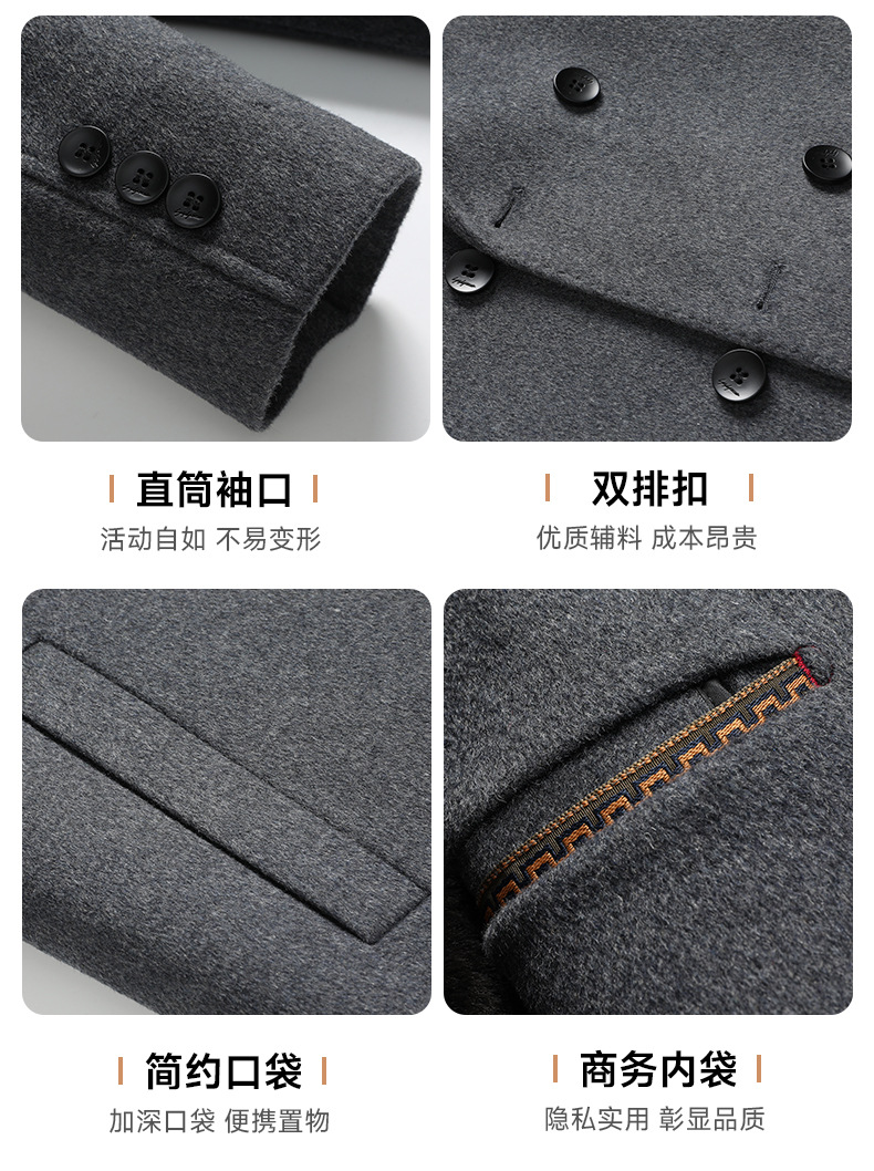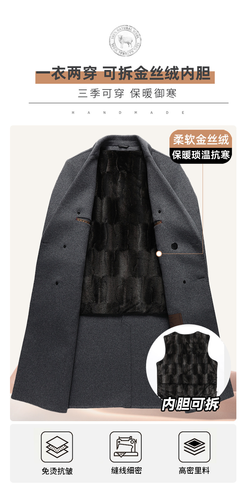 100% 울 더블 브레스티드 무릎 아래 길이 울 코트 2025 가을 겨울 골드 벨벳 안감 양면 울 코트 남성용스토어 가기