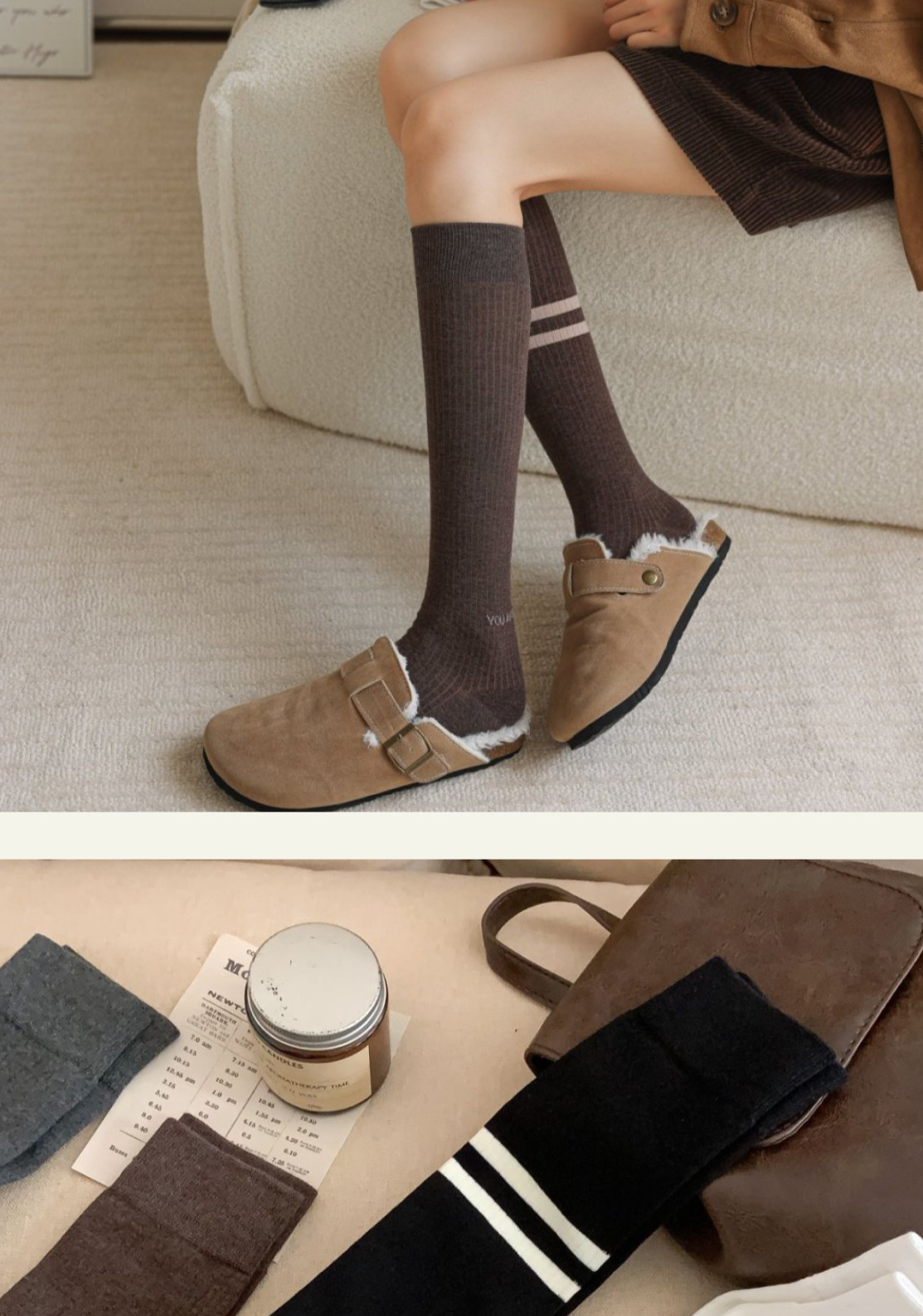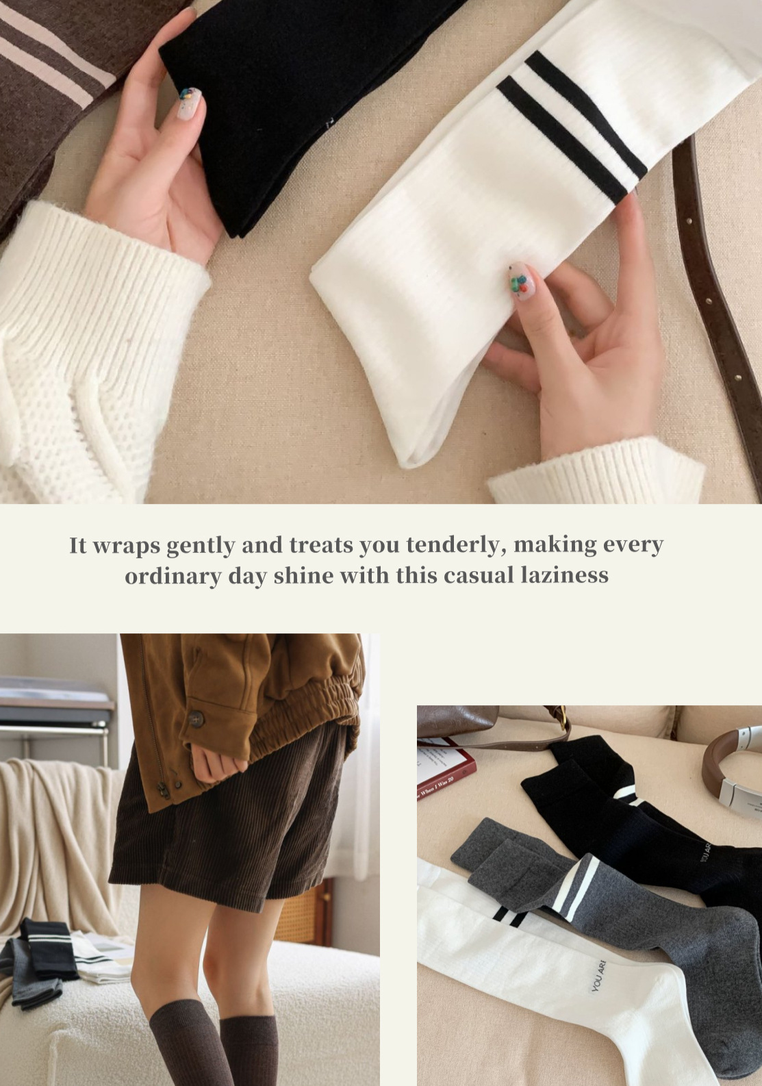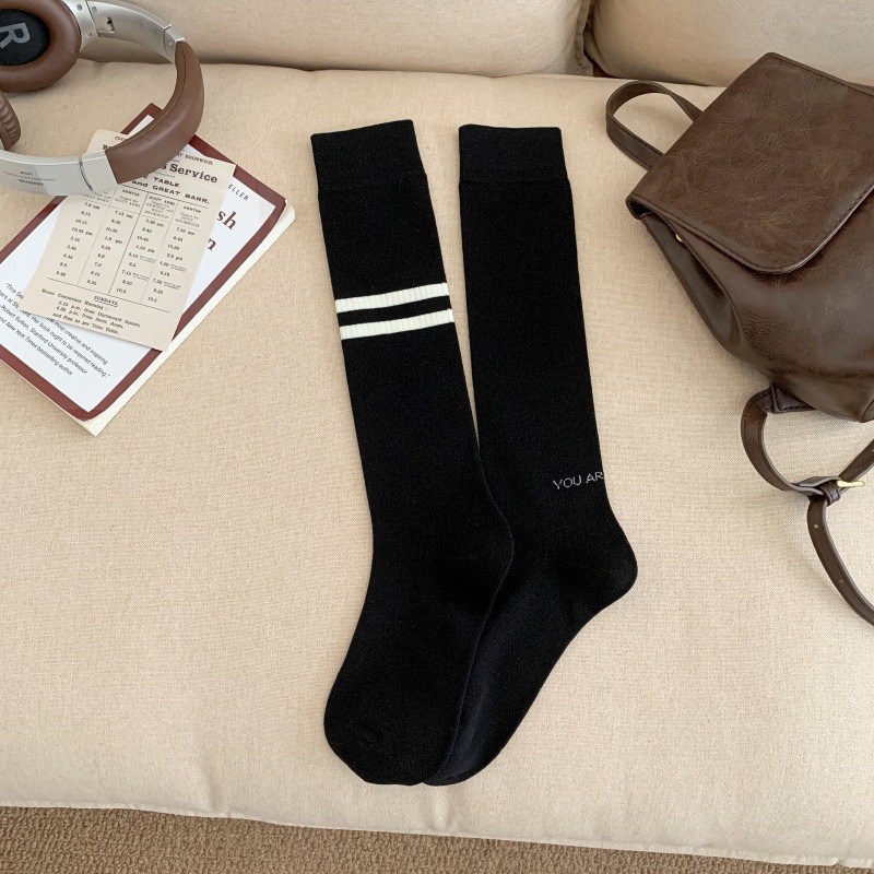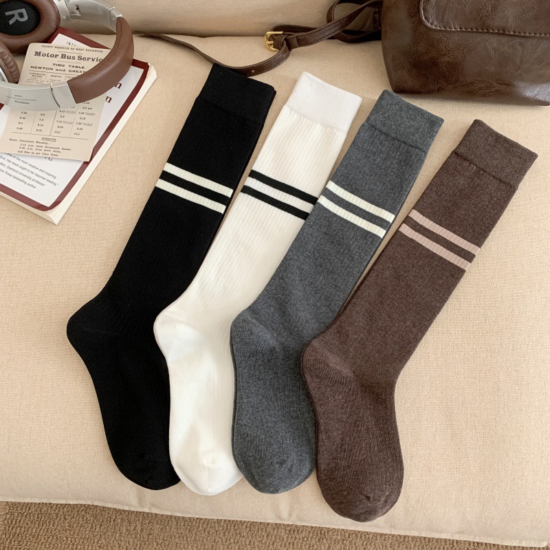 양말 여성의 봄과 가을 JK 종아리 양말 면화 슬리밍 학업 스타일 소녀 2 바 AB 줄무늬 압력 스타킹