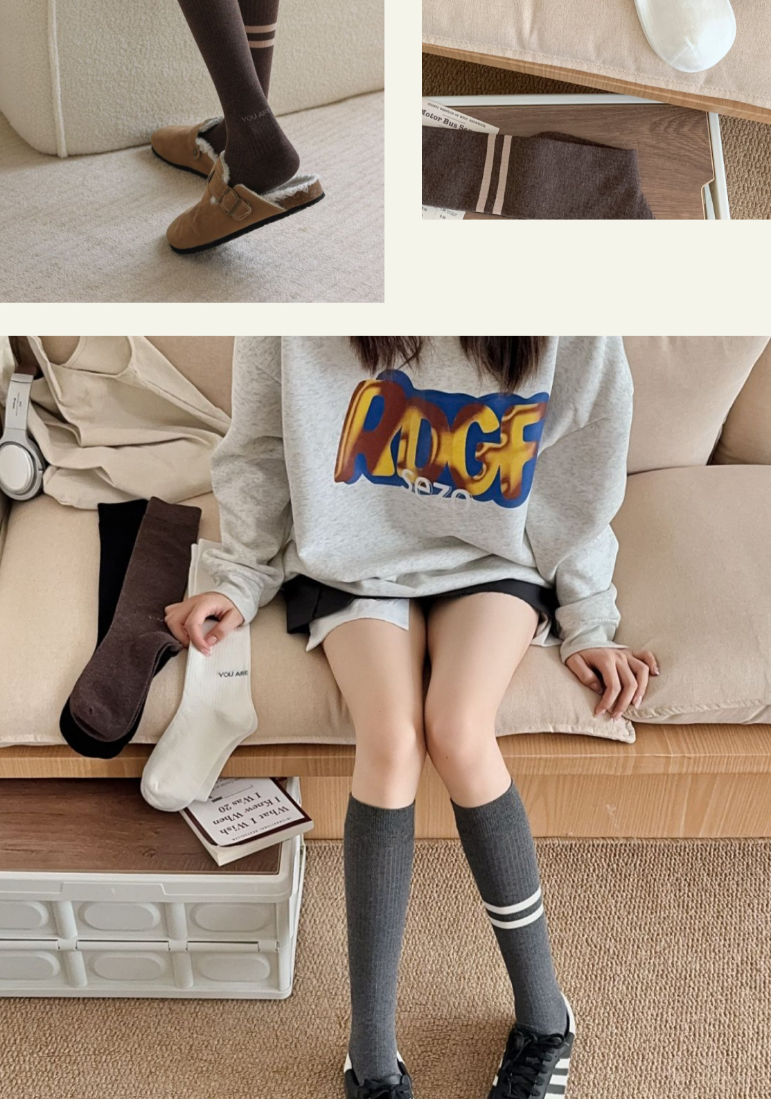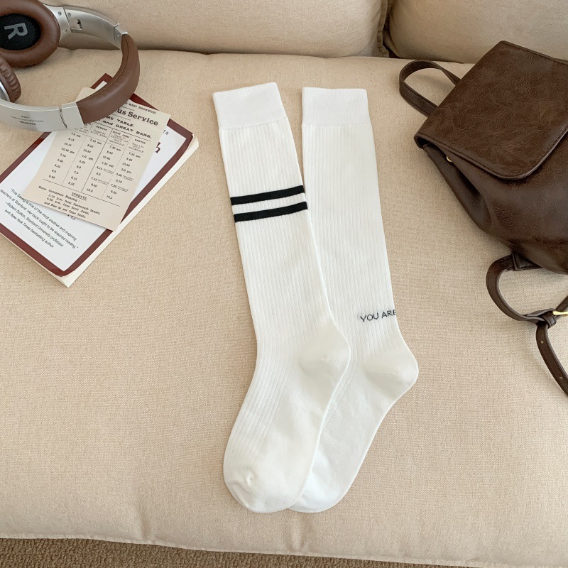 양말 여성의 봄과 가을 JK 종아리 양말 면화 슬리밍 학업 스타일 소녀 2 바 AB 줄무늬 압력 스타킹스토어 가기