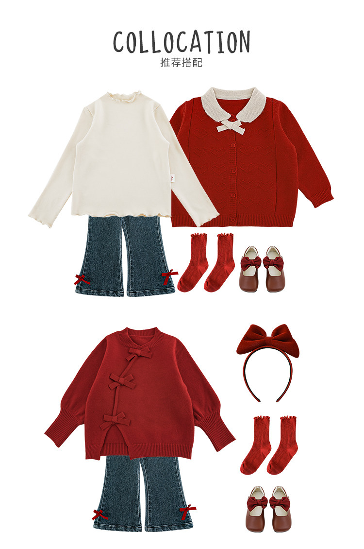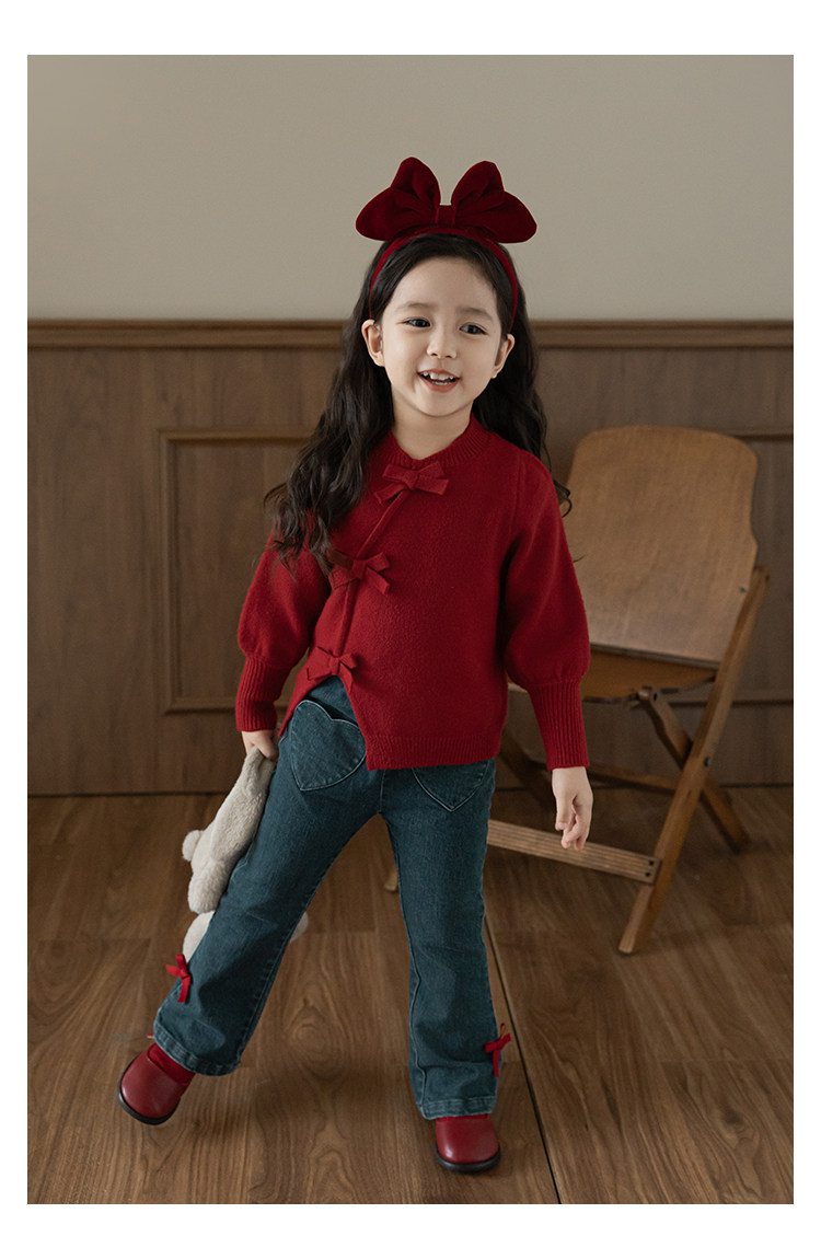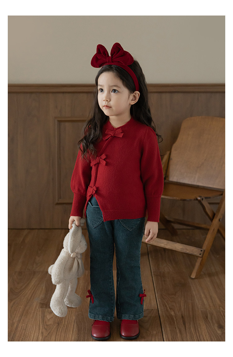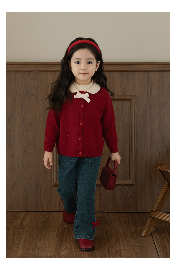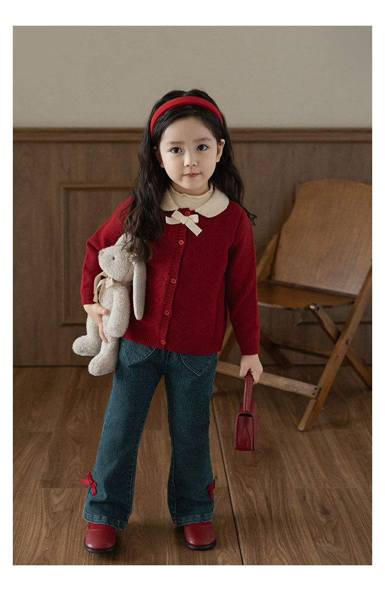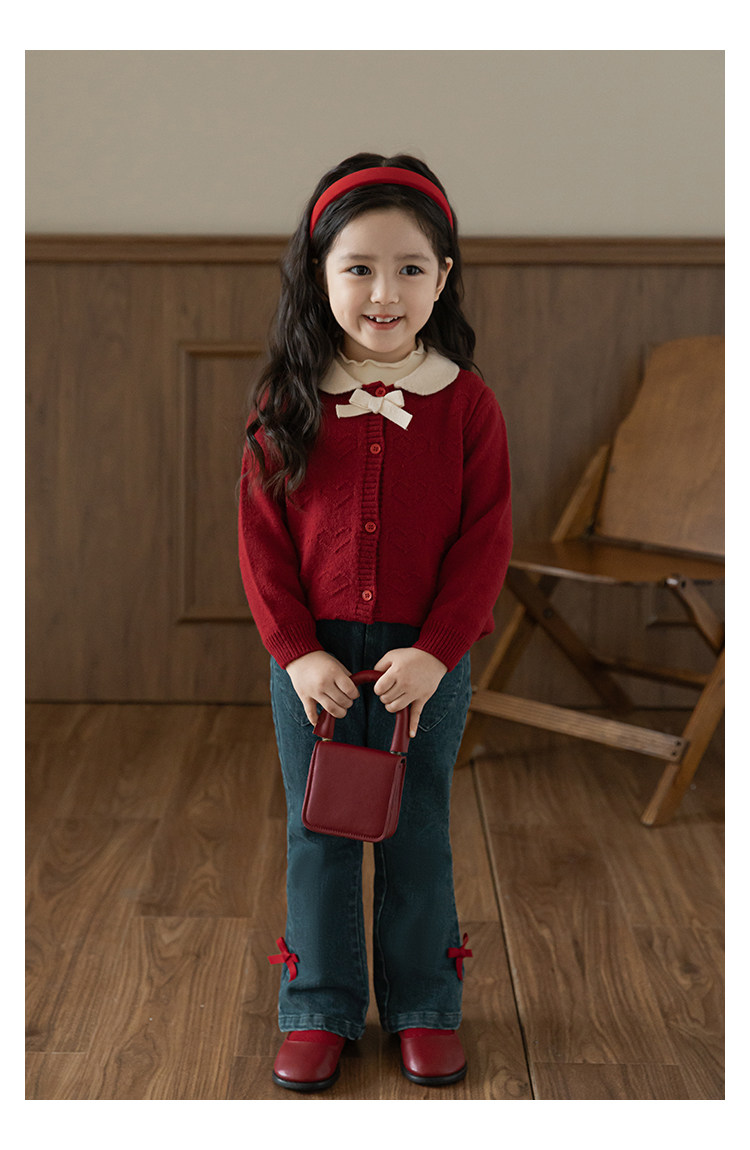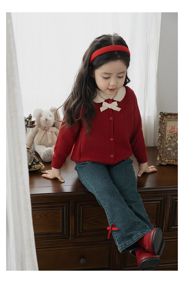 Wurib One Girl's Retro Sweet scruff Horn Jeans 가을 어린이 귀여운 대비 나비 리본 바지