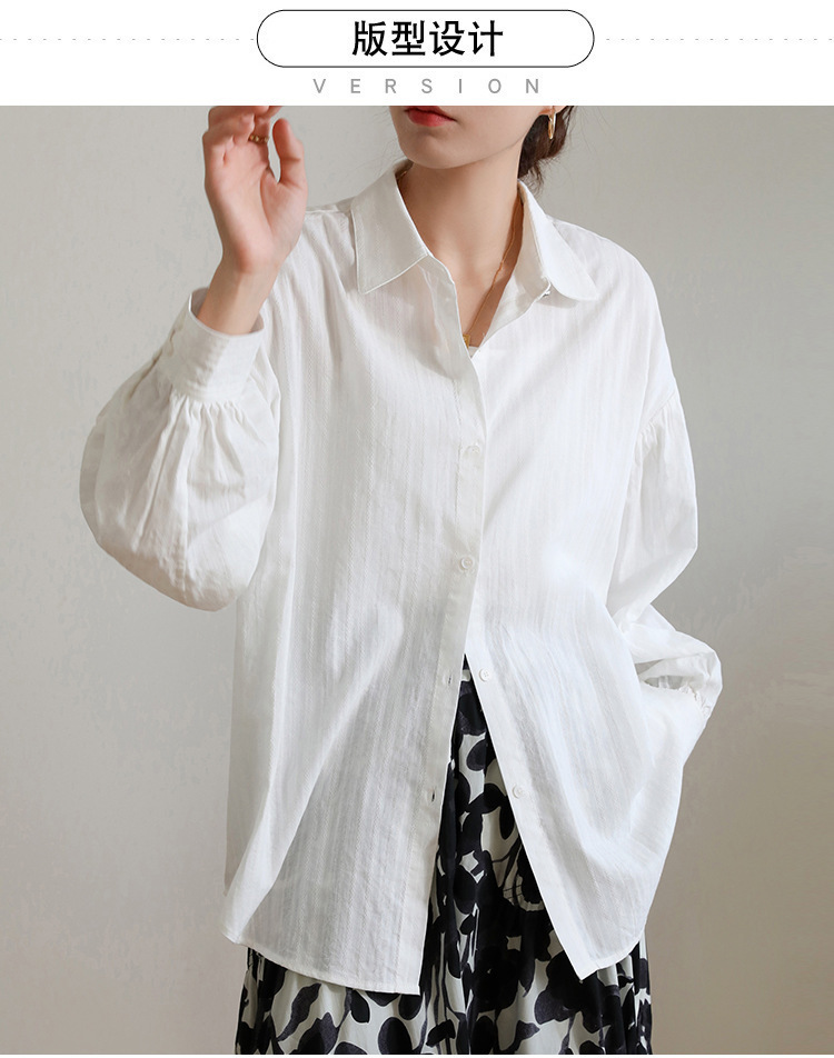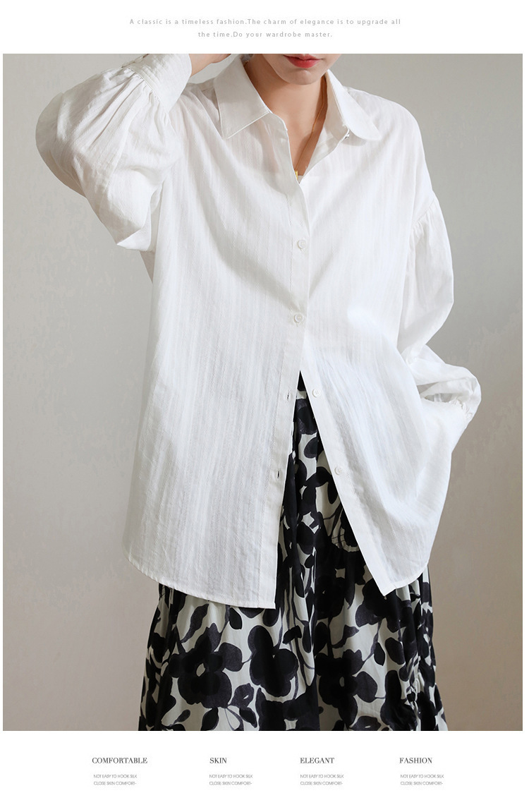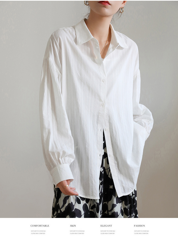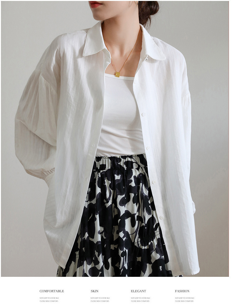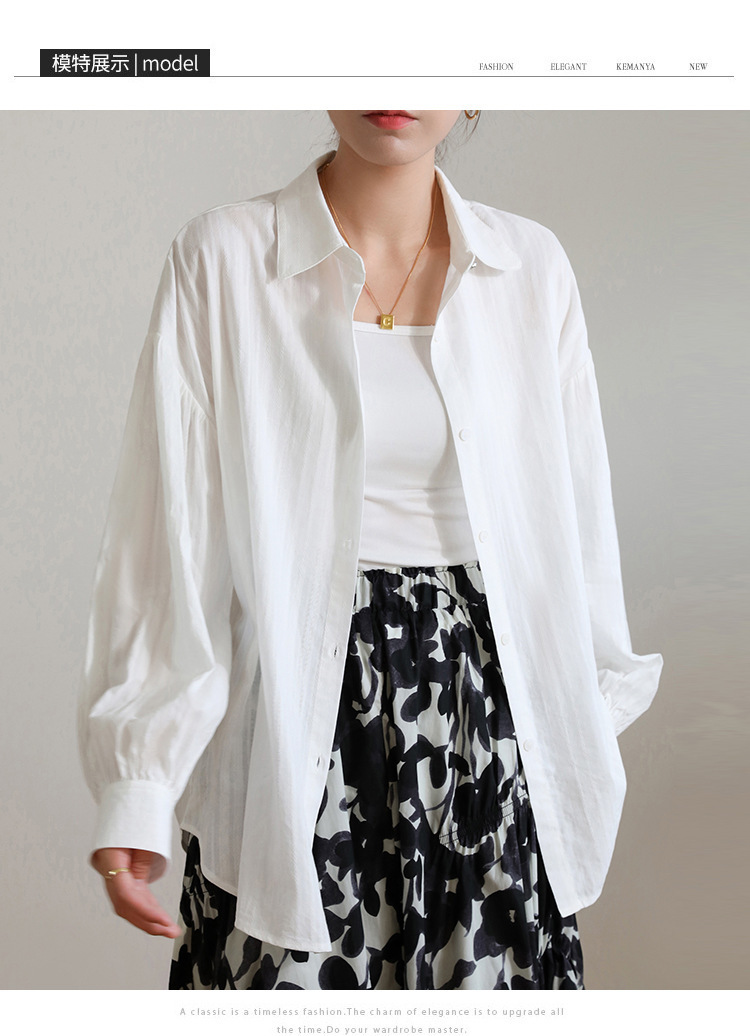 여성을위한 흰색 긴팔 폴로 칼라 셔츠 초가을 하이 엔드 얇은 태양 보호 셔츠 느슨한 게으른 탑
