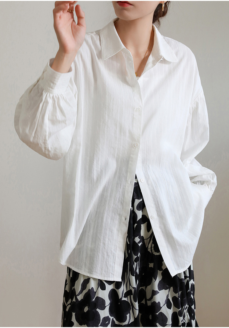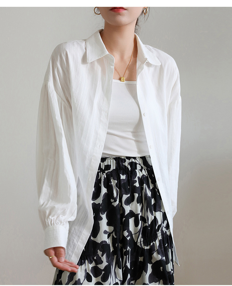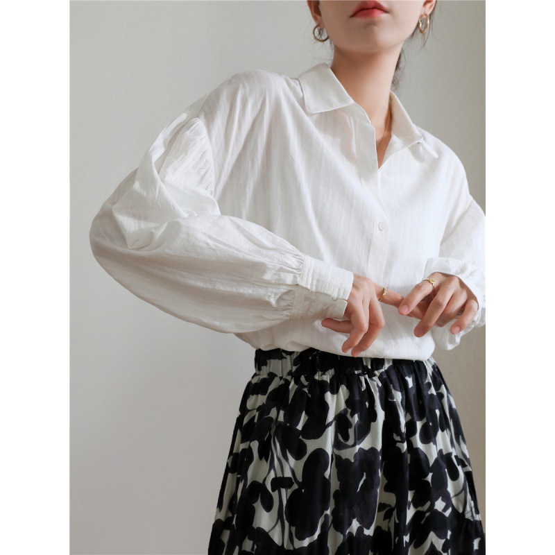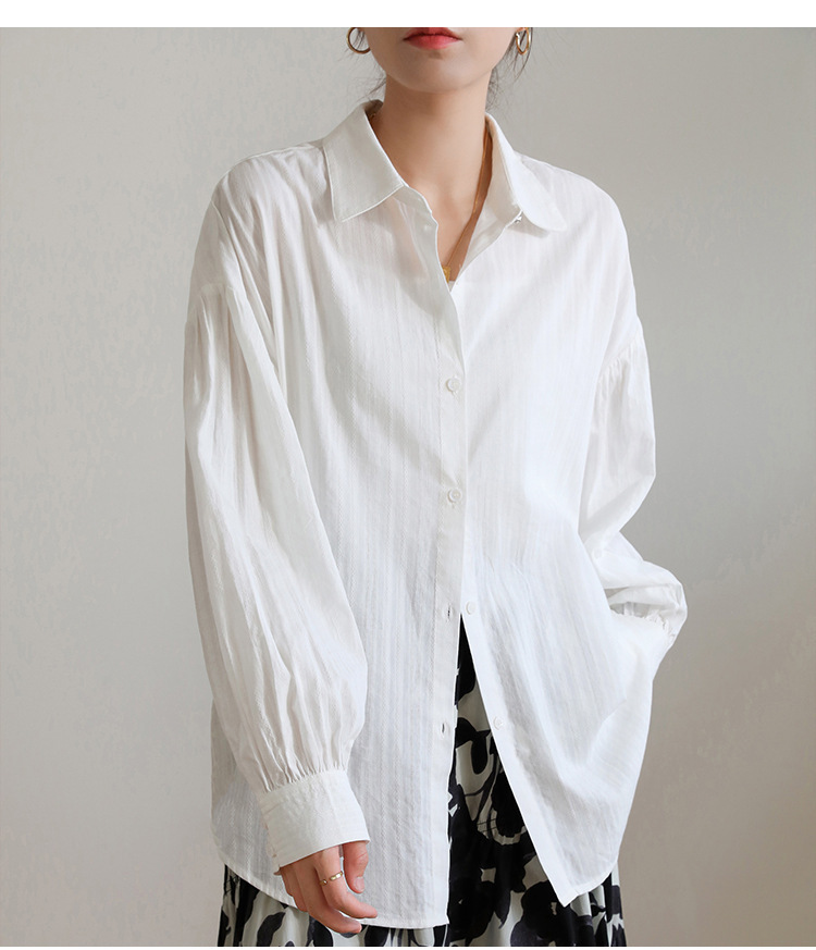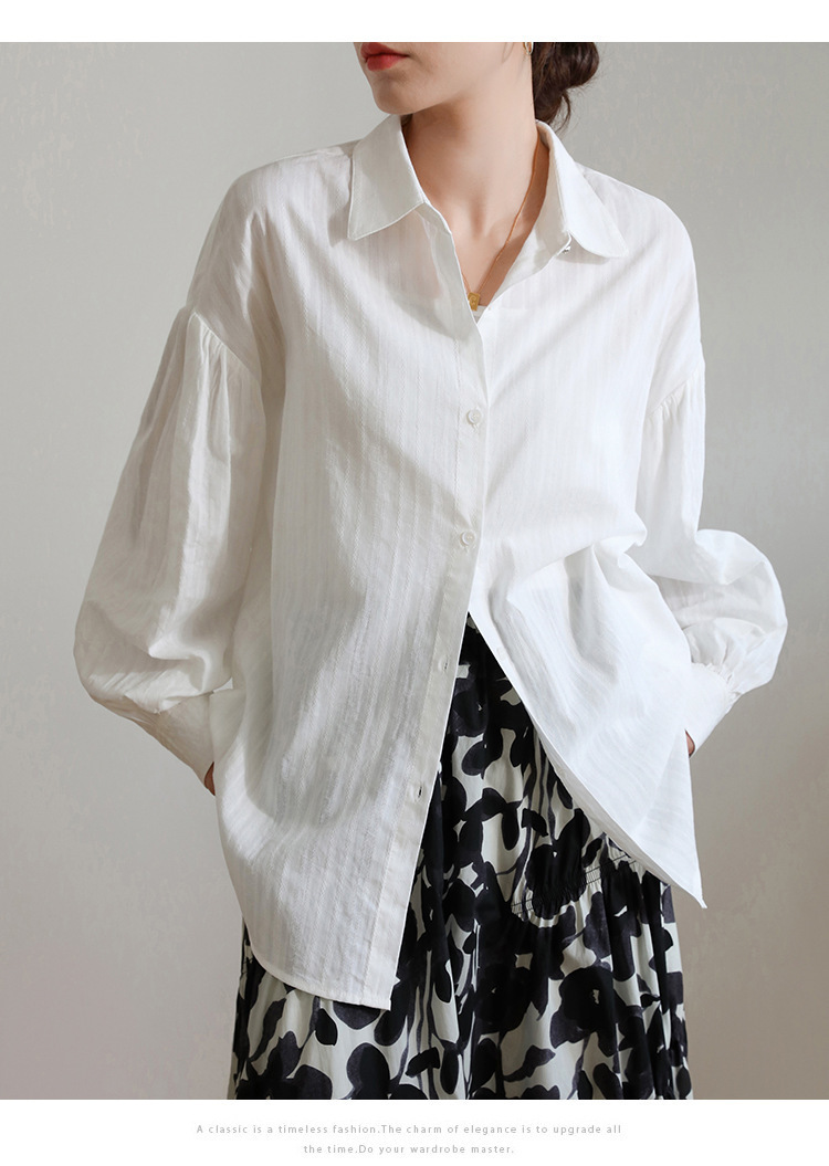 여성을위한 흰색 긴팔 폴로 칼라 셔츠 초가을 하이 엔드 얇은 태양 보호 셔츠 느슨한 게으른 탑