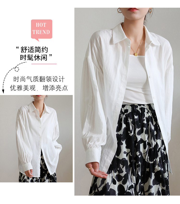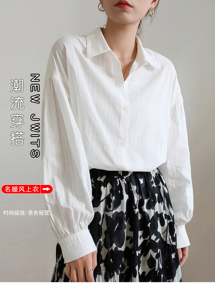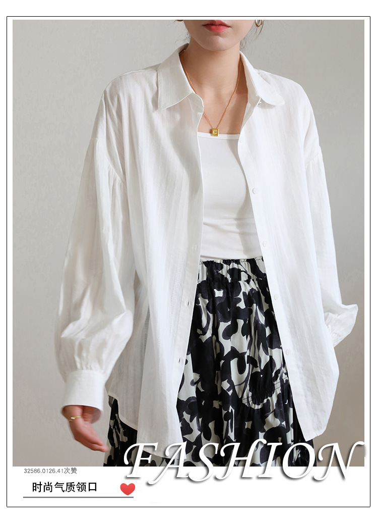 여성을위한 흰색 긴팔 폴로 칼라 셔츠 초가을 하이 엔드 얇은 태양 보호 셔츠 느슨한 게으른 탑스토어 가기