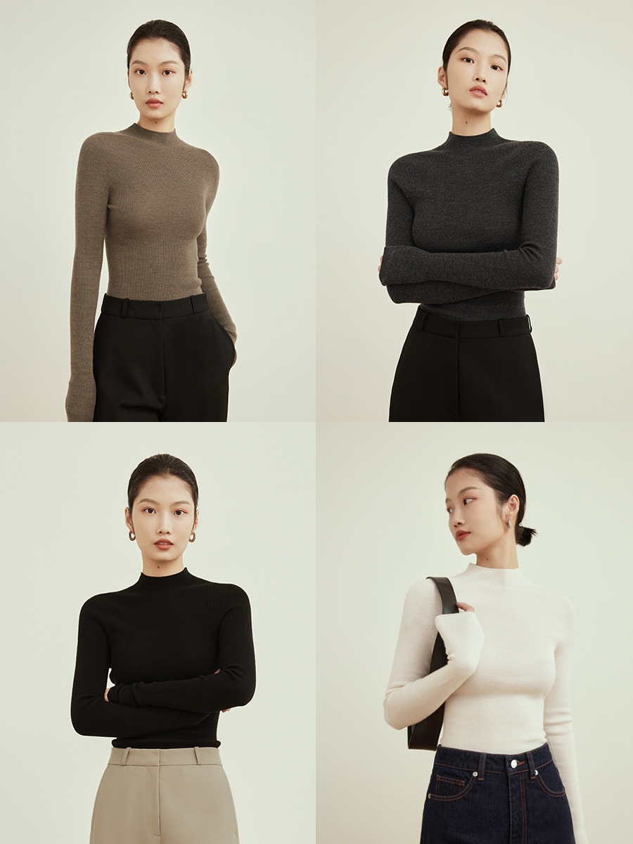여성복 공장 2025 신상품 세탁기 사용 가능 100% 울 심리스 하프 터틀넥/하이넥 니트 베이스 울 스웨터스토어 가기