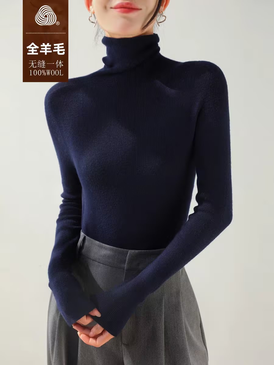 여성복 공장 2025 신상품 세탁기 사용 가능 100% 울 심리스 하프 터틀넥/하이넥 니트 베이스 울 스웨터