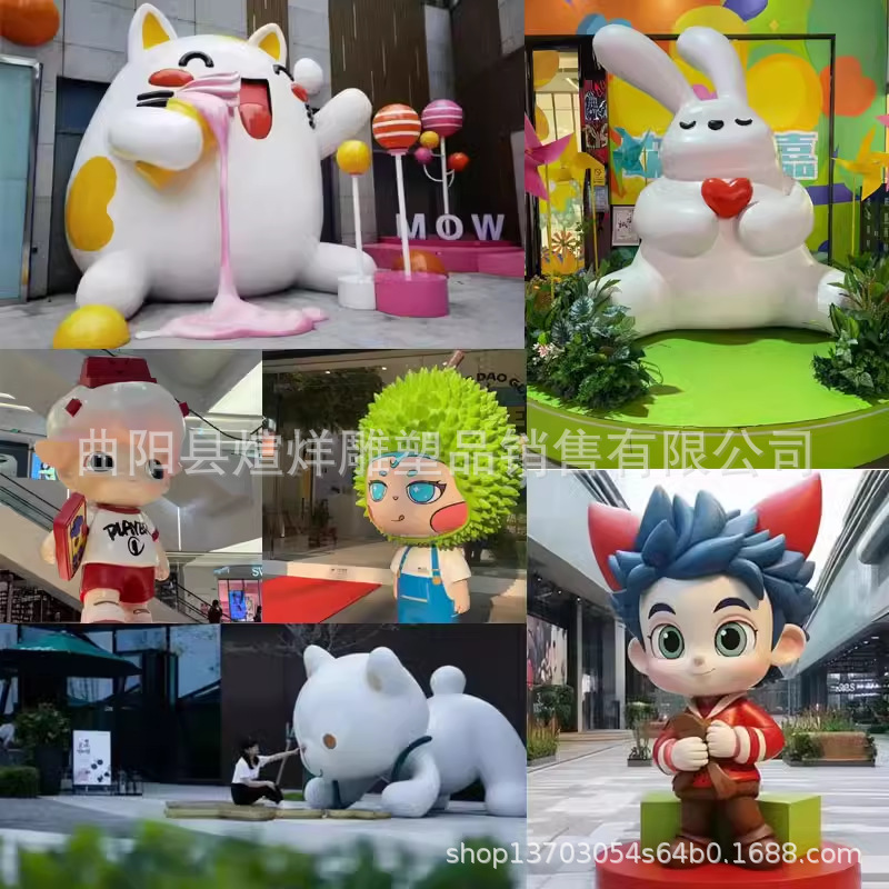 유리섬유 조각 만화 캐릭터 조각 3D 프린팅 마스코트 장식품 맞춤형 대형 IP 피규어 도어 스탠딩 조각스토어 가기