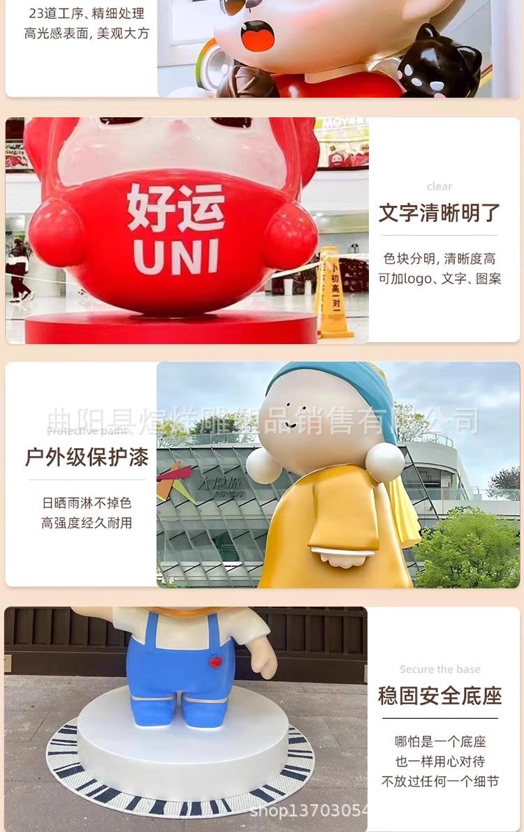 유리섬유 조각 만화 캐릭터 조각 3D 프린팅 마스코트 장식품 맞춤형 대형 IP 피규어 도어 스탠딩 조각
