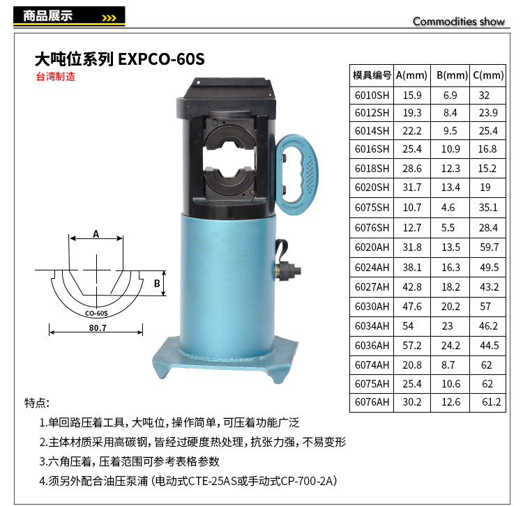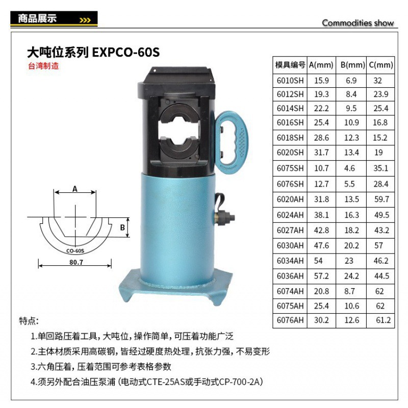 대만 개발 대형 톤 분할 유압 압력 라인 클램프 압착 클램프 EXPCO-60ST스토어 가기