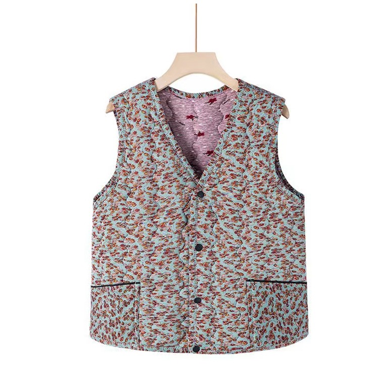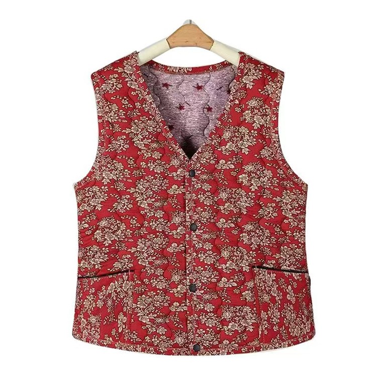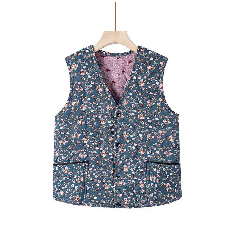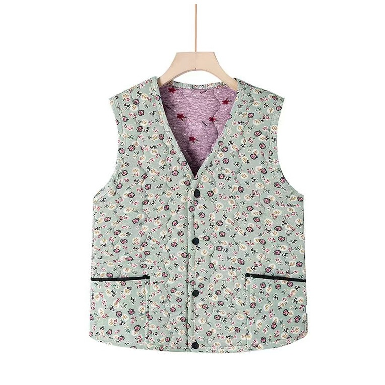 꽃 조끼 여성의 가을과 겨울 두꺼운 따뜻한 면화 조끼 어머니의 내부와 외부 조끼 착용 중년 및 노인을위한 조끼 조끼