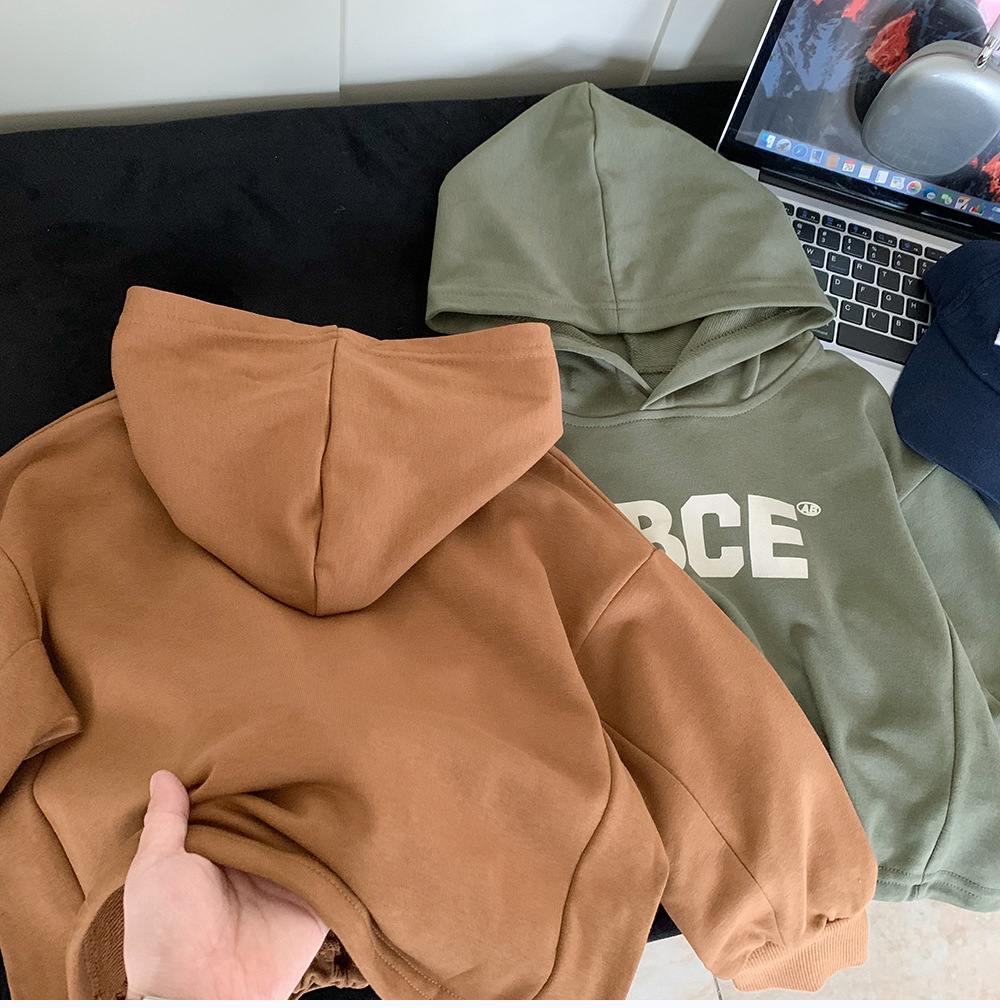 어린이 스웨터 2024 새로운 봄과 가을 착용 소년 스웨터 코트 한국식 서양식 후드 베이비 탑 풀오버스토어 가기