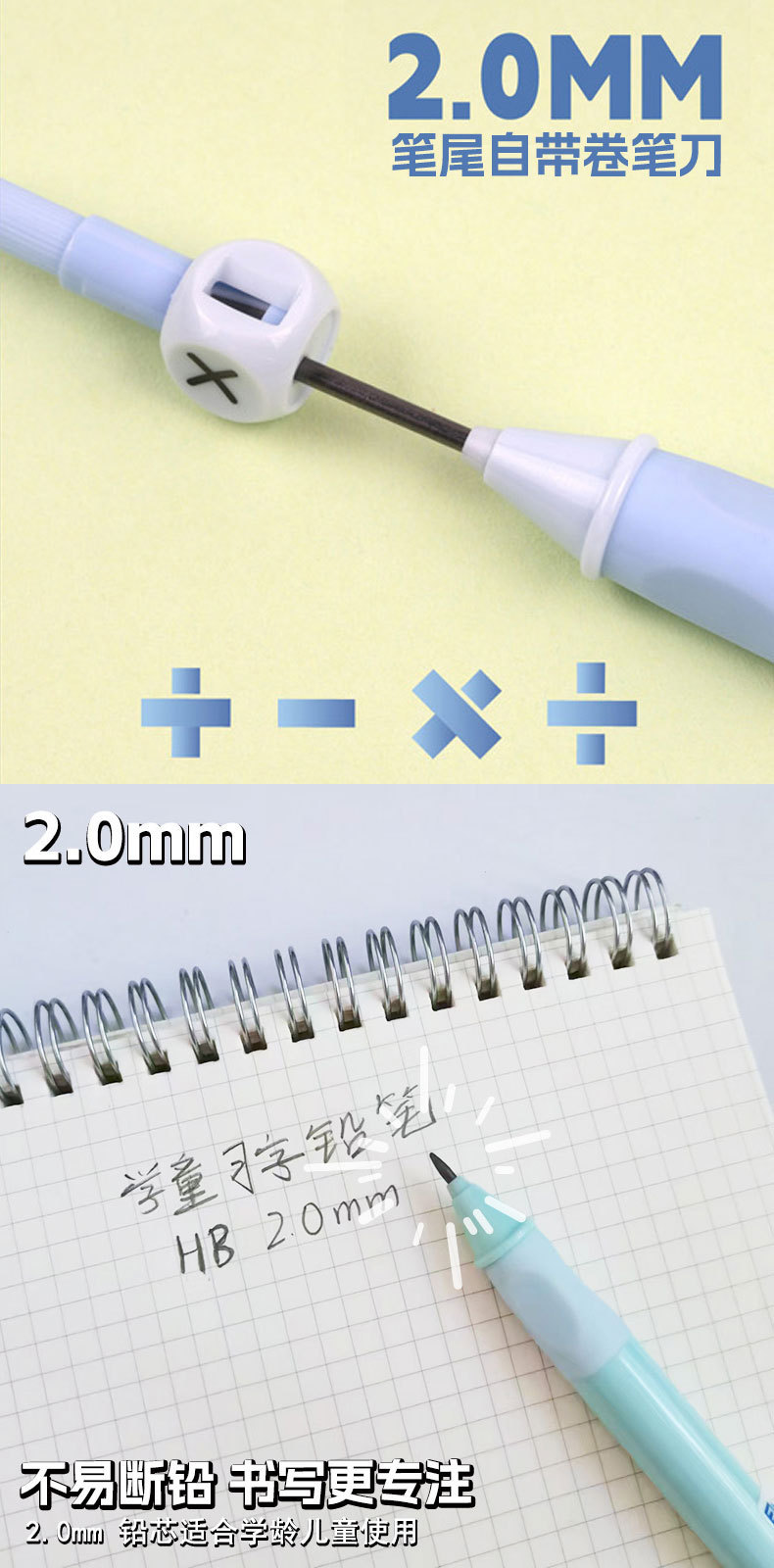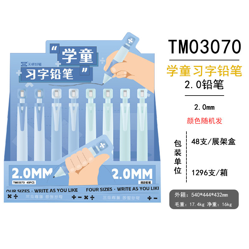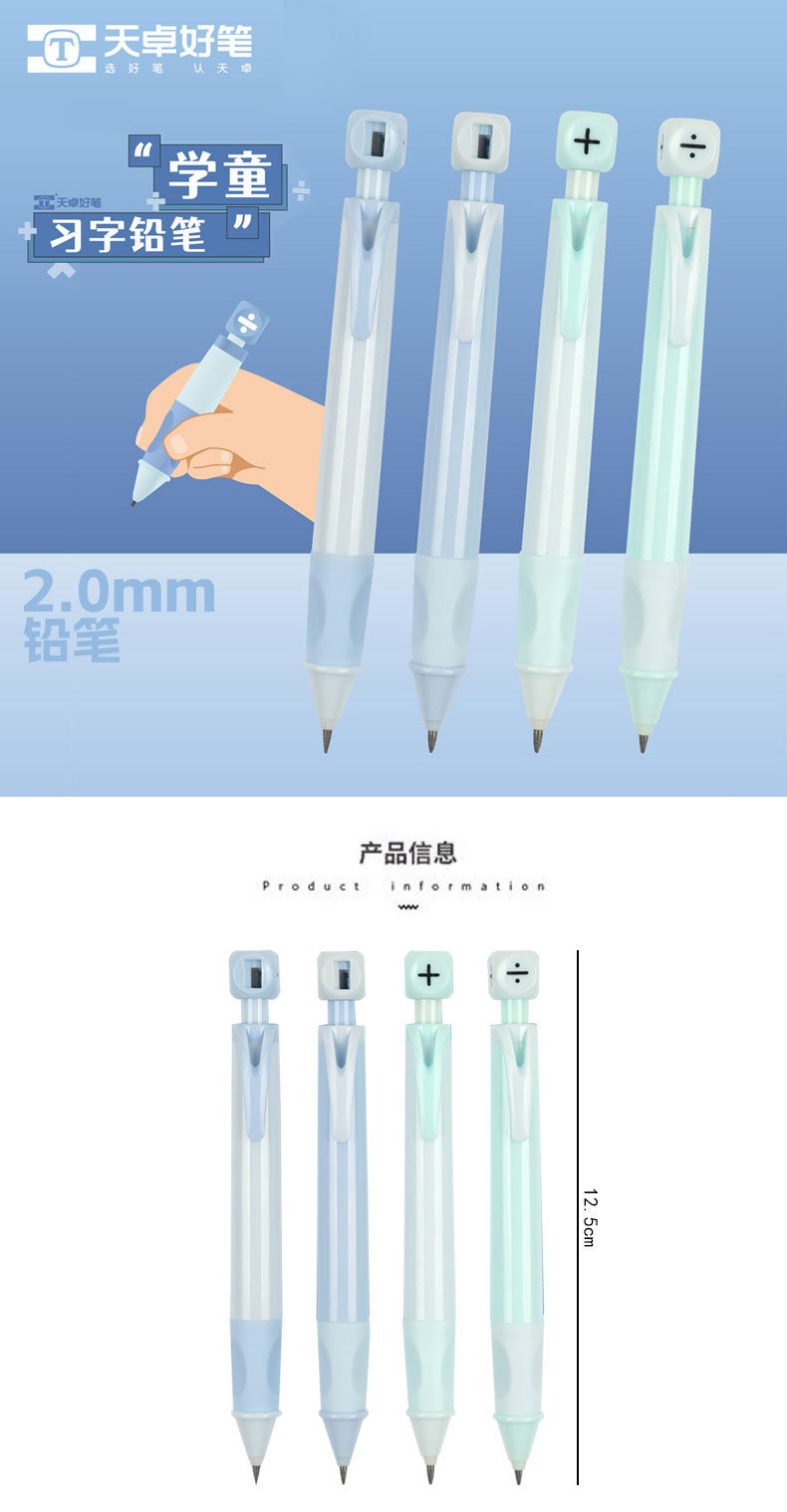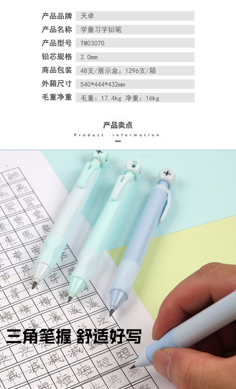 Tianzhuo 03070 삼각형 자세 그립 막대 액티브 연필 2.0 리드 코어 두꺼운 머리 학생 자동 연필 남학생스토어 가기