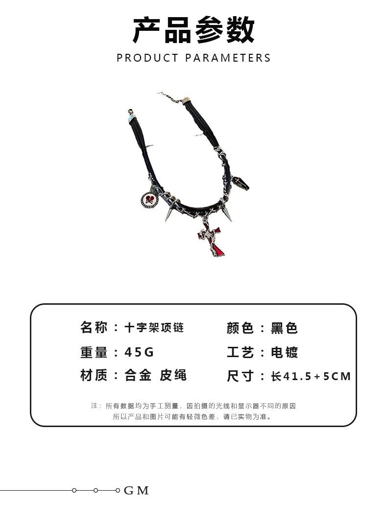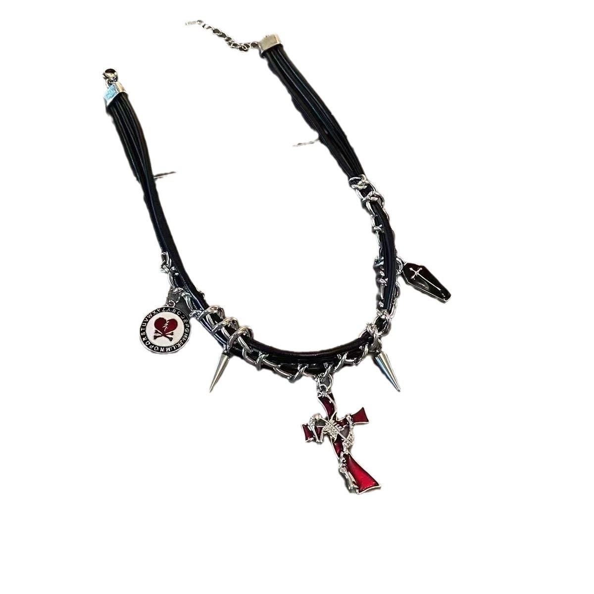 힙합 다크 쇄골 체인 크로스 리벳 랩 목걸이 3 층 가죽 체인 패션 성격 쇄골 체인